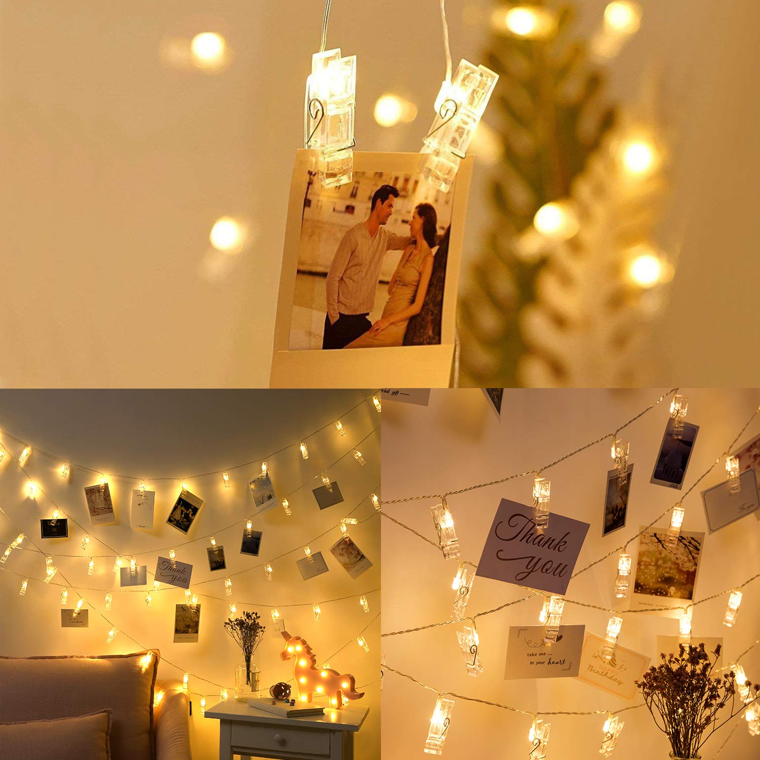- Light up beautiful moment - This photo clips string lights with 20 leds is a very unique way to display photos or pictures in your house. The photo clip firefly string lights can make the plain white wall come to life with photos of your family or children, artworks, cards, paintings, all things that matter to you or the one you care. The picture hanging clips string light also can decorate your home and bring you warm and cozy atmosphere.