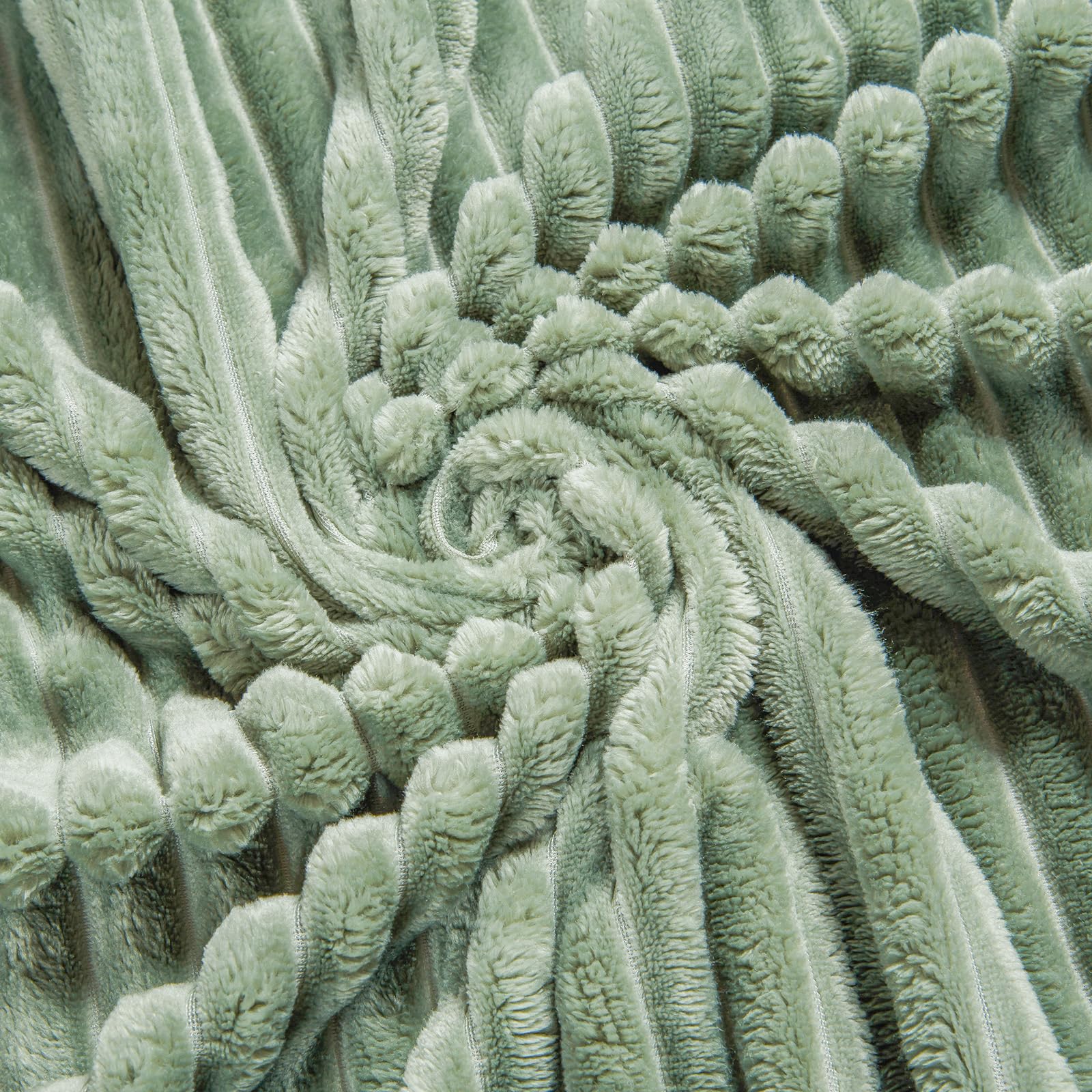 Bnuitland Sage Green Flannel Throw Blanket,300GSM Super Soft Fleece Stripe Pattern Sofa Blanket for Adults and Kids, Lightweight Cozy Bed Throw for Home Decor All Season