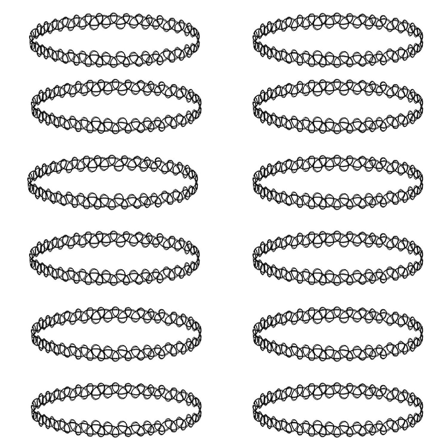 BodyJ4You 12PC Tattoo Choker Necklace - 90s Accessories 2000s Jewelry Y2K Fashion Vintage Trendy - Rainbow Goth Black Pink Green Blue White - Adjustable Stretchy Elastic Necklace Summer Vacation Set
