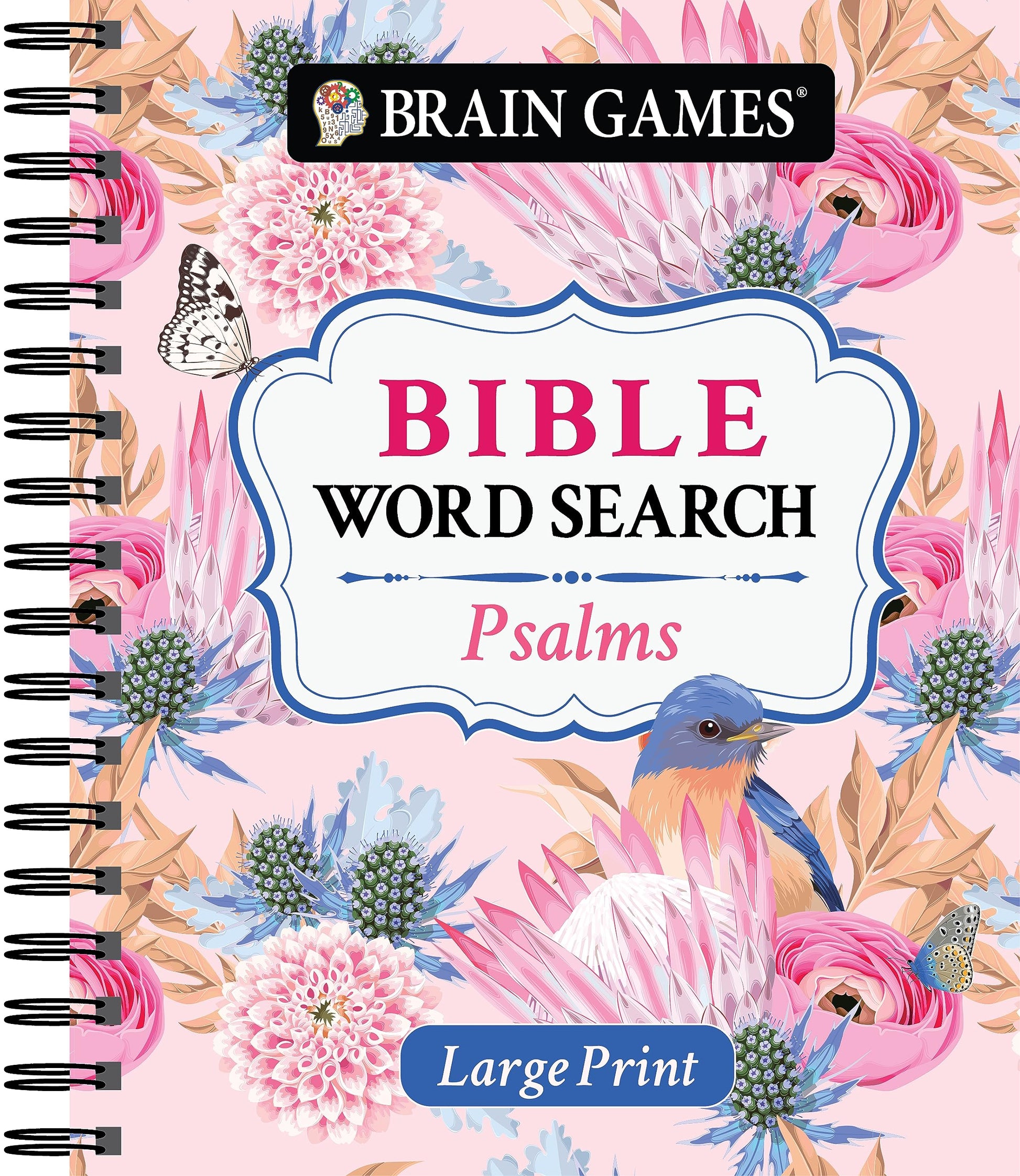 Details: Brain Games Large Print Bible Word Search: Psalms presents an educational and meaningful way to look at the Bible. Discover more than 80 large print word search puzzles that contain prayers from the book of Psalms. This inspirational puzzle book gives you a new way to learn about the Bible. Answer key in the back of the book. Spiral bound, 192 pages