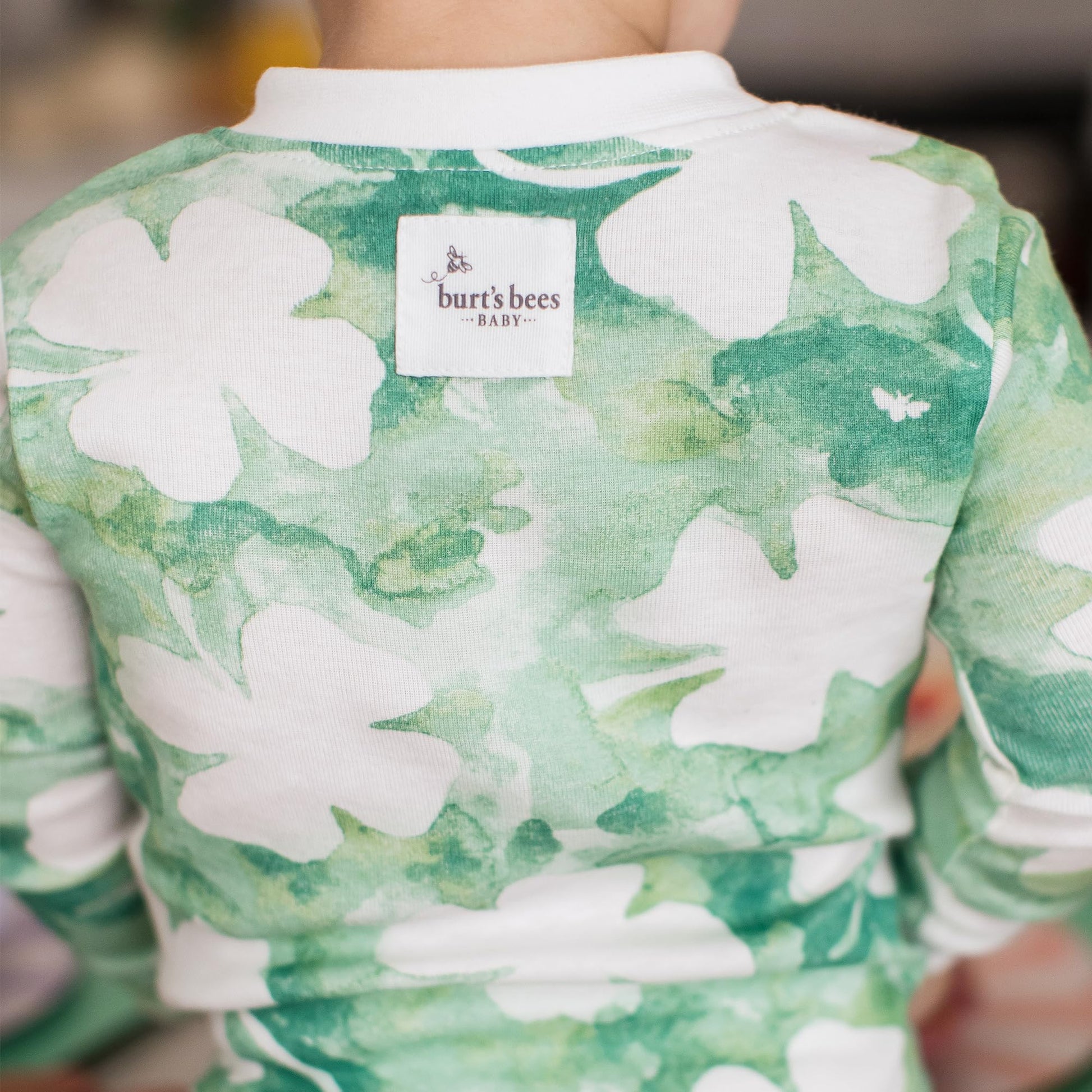 Burt's Bees Baby Baby Boy's Sleeper PJs, 100% Organic Cotton, One-Piece Footie, Zip Up Jumpsuit, Snug Fit Pajamas, Artsy Clover, 12 Months