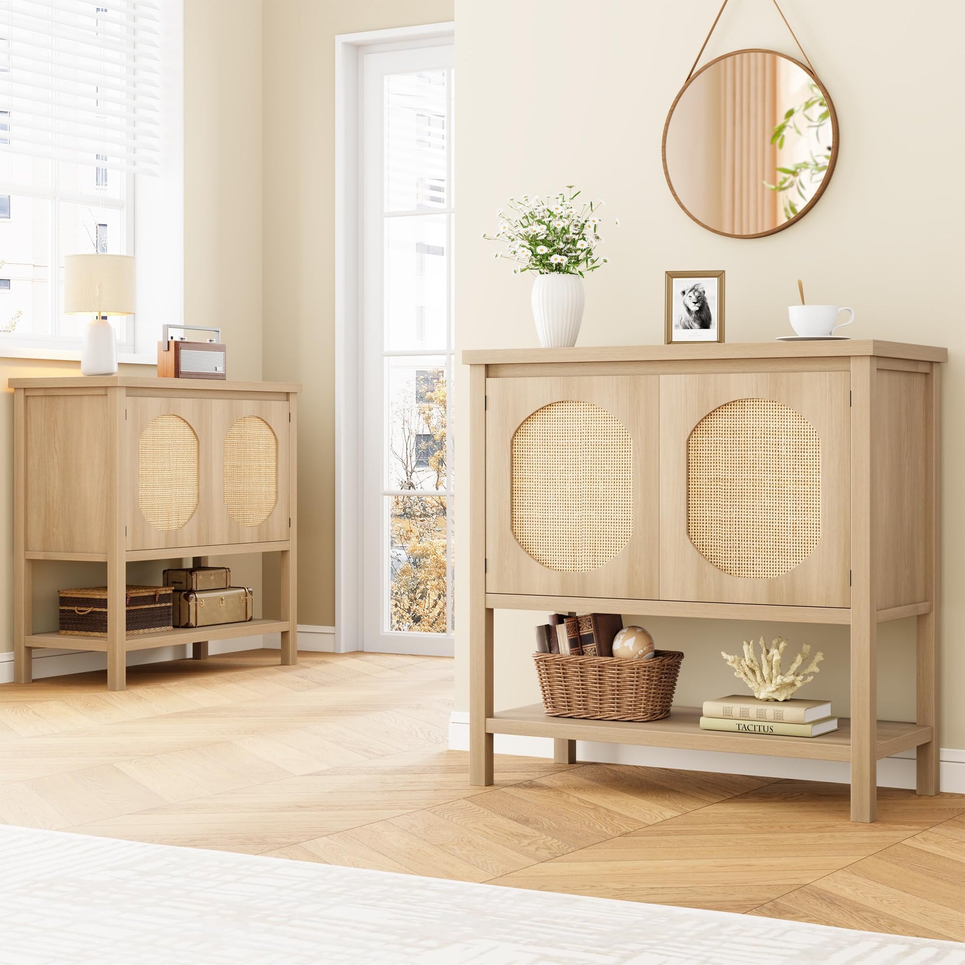 - Large Storage Space: This entryway table has a spacious tabletop, providing ample storage space for personal items such as magazines, glasses and cosmetics. This console table with doors allows you to hide your things inside and keep the space tidy. The shelf at the bottom of this sofa table is very suitable for placing storage baskets or higher display items as additional storage space. Make your living space cleaner and tidier