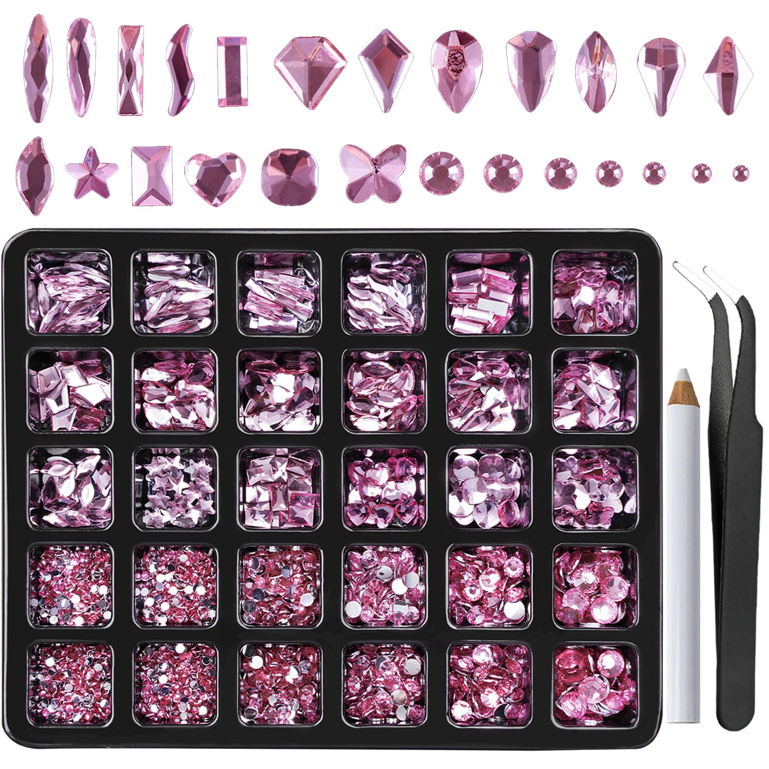 Canvalite 2518Pcs Rhinestones Nail Gems, 12 Styles 3D Glass AB Crystals Charms Shiny Multi Shape Flatback Nail Rhinestones for Nail Art with Picker and Tweezers for DIY Nail Art