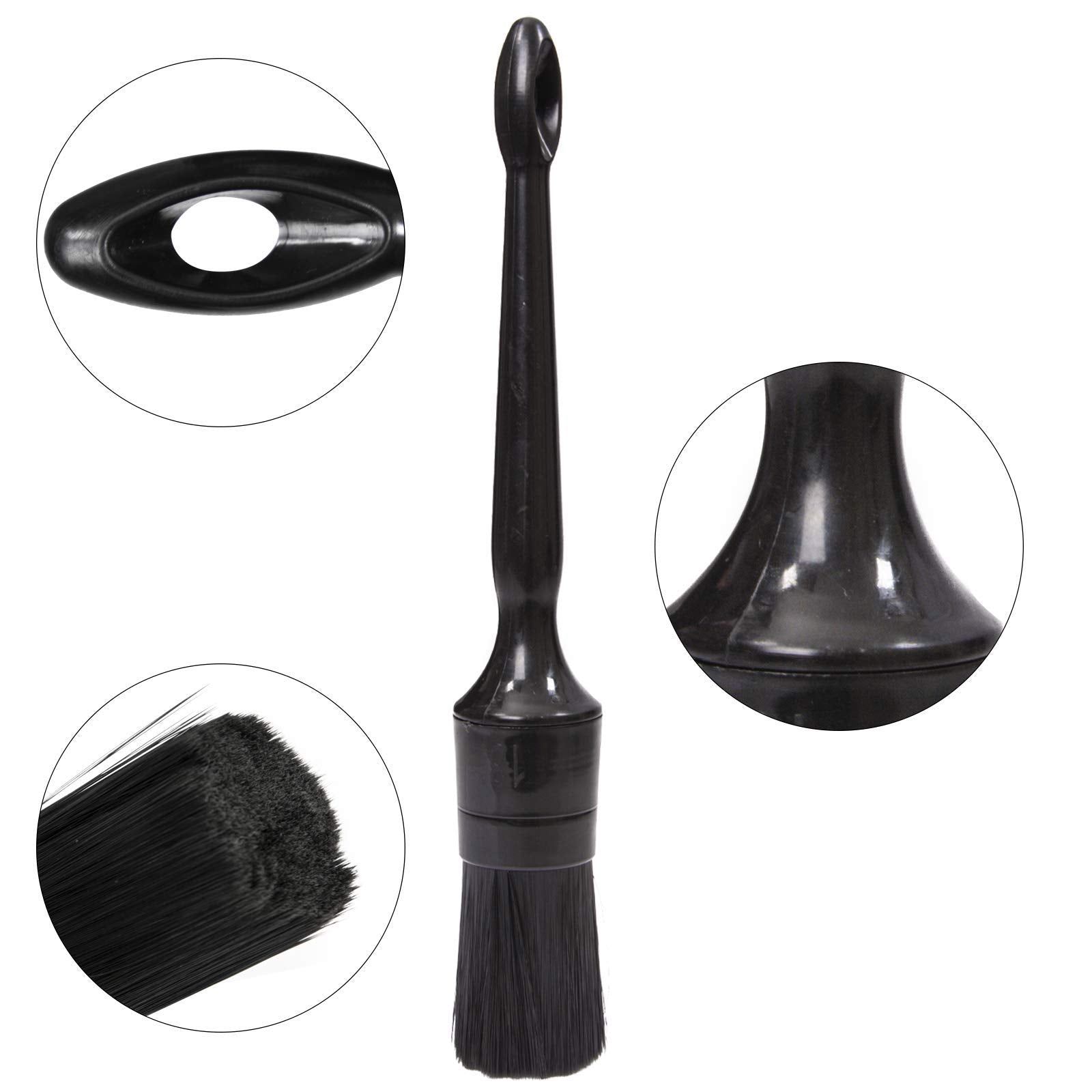 - These detail brushes car detailing built with a solid robust handle make it becomes easier to grip and move. The handle of ultra soft brush and black hair brush is long enough to keep your hand in a natural position to prevent fatigue, help you clean car fast and easily.