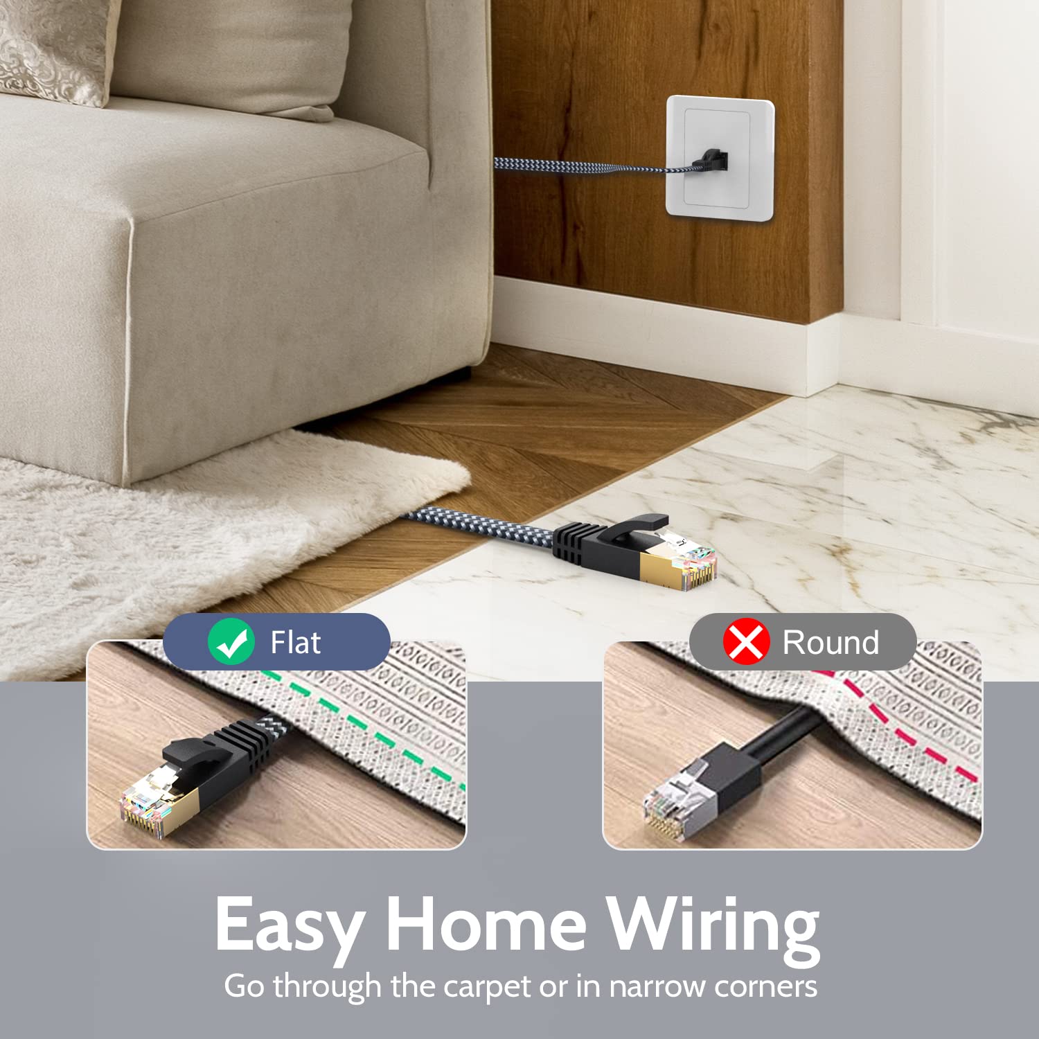 Cat 7 Ethernet Cable - Flat Design, Easy Install, Nylon Braided, More Durable High Speed Internet Cable Network Cord Shielded LAN Cables for Computers, Routers, Switches, and Gaming Consoles - 6.6FT
