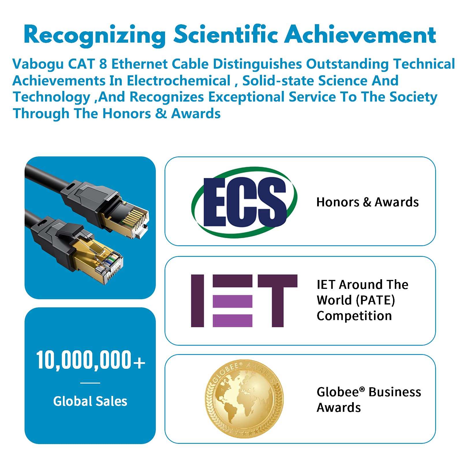 Cat 8 Ethernet Cable, 1.5Ft 3Ft 6Ft 10Ft 15Ft 20Ft 30Ft 40Ft 50Ft 60Ft 100Ft Heavy Duty High Speed Internet Network Cable, Professional LAN Cable Shielded in Wall, Indoor&Outdoor
