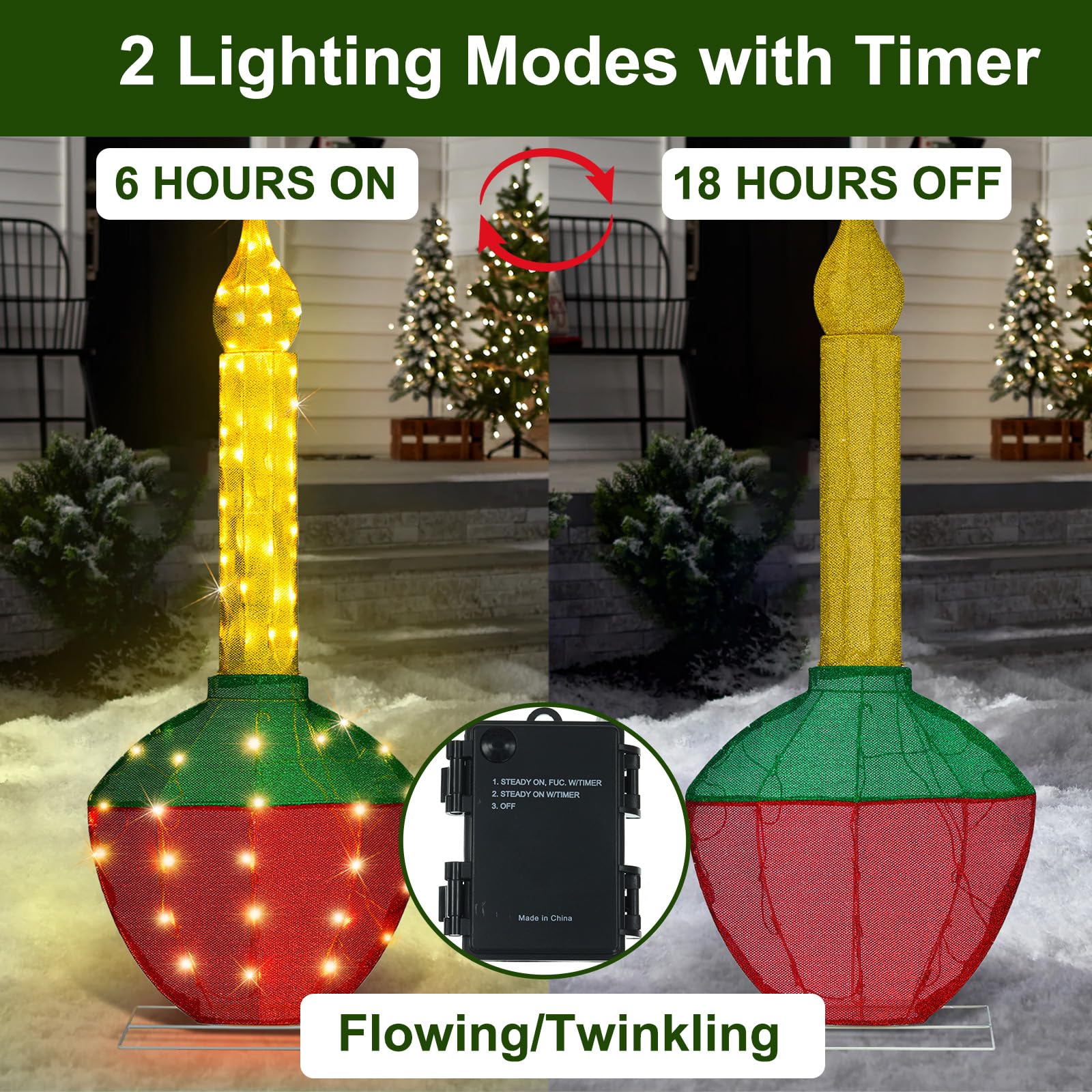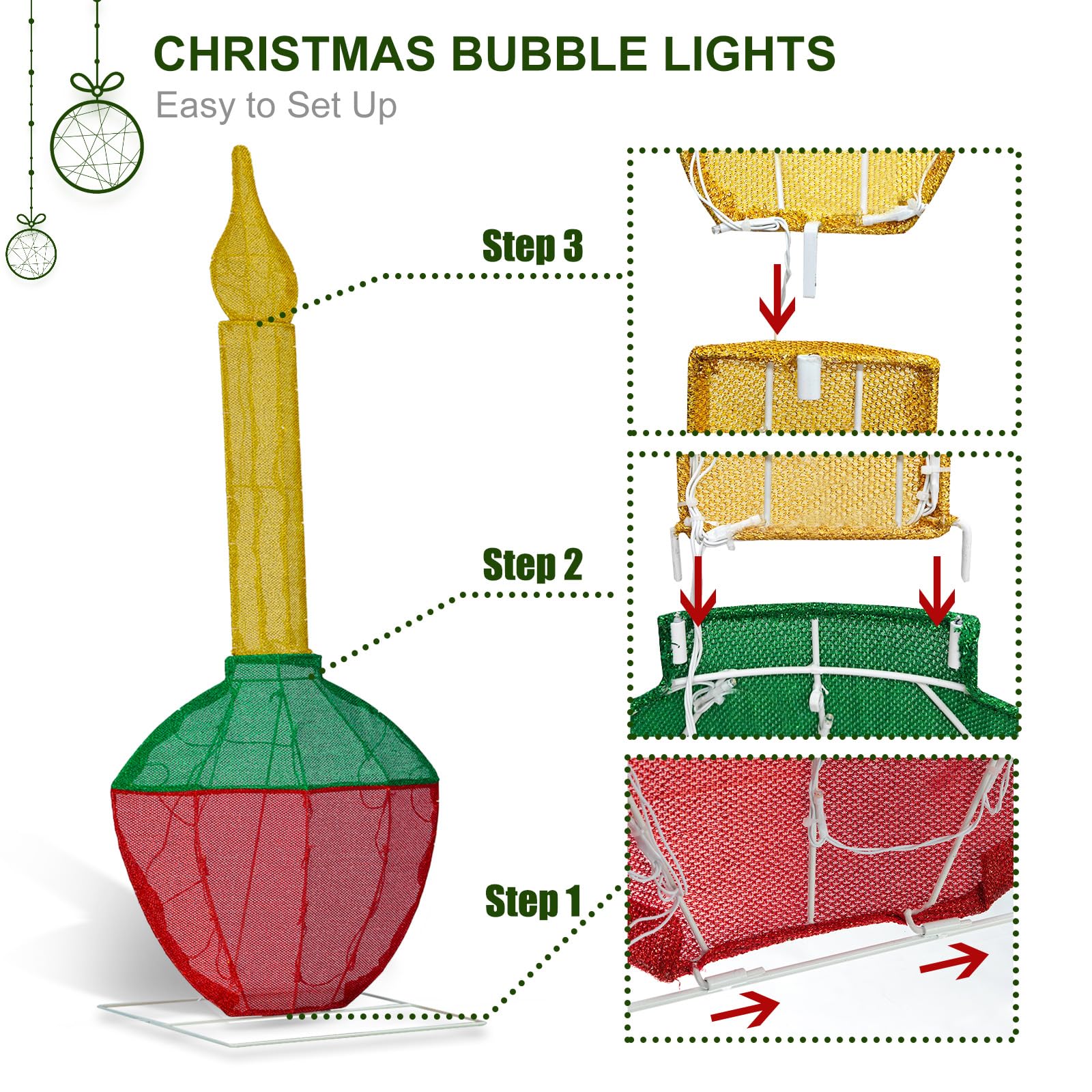 Christmas Bubble Light 48’’H Pre-Lit with 60 Warm White LED Lights, Battery Operated with Timer, Twinkling and Flowing, Traditional Decoration