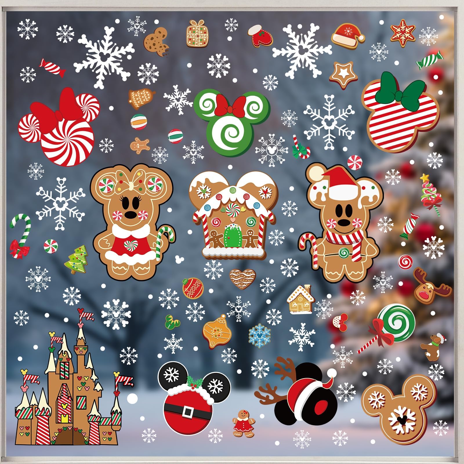 Christmas Gingerbread Window Cling Decorations - 12 Sheets Double-Sided Christmas Gingerbread Sticker for Window Decor, Mouse, Castle, Snowflake Stickers for Indoor Office Home Decor