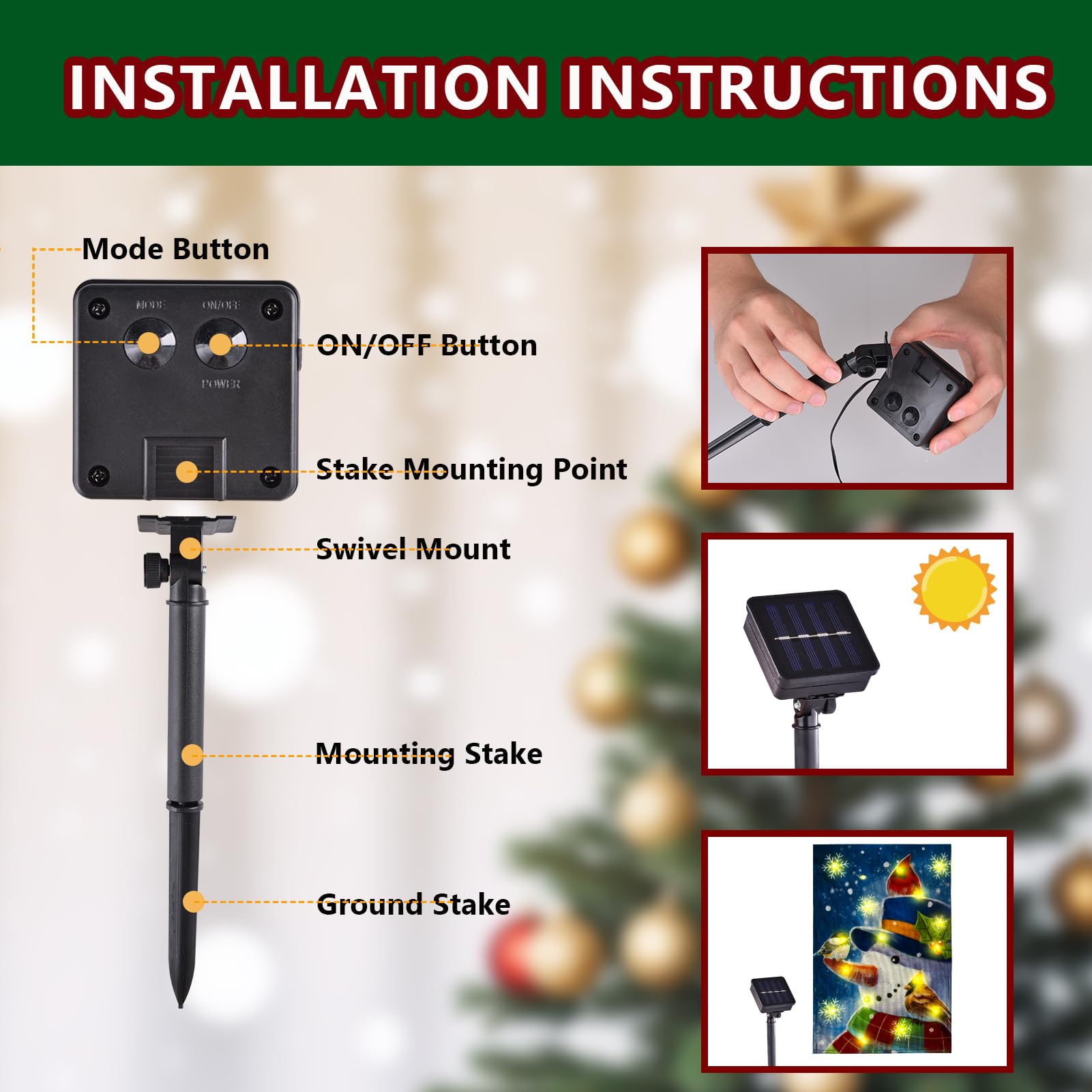 - Solar Powered Christmas Garden Flag: The lighted garden flag with LED lights are solar powered! It will work automaticlly 6-8 hours after fully charging the whole day. We uses higher quality solar panels now, which last longer