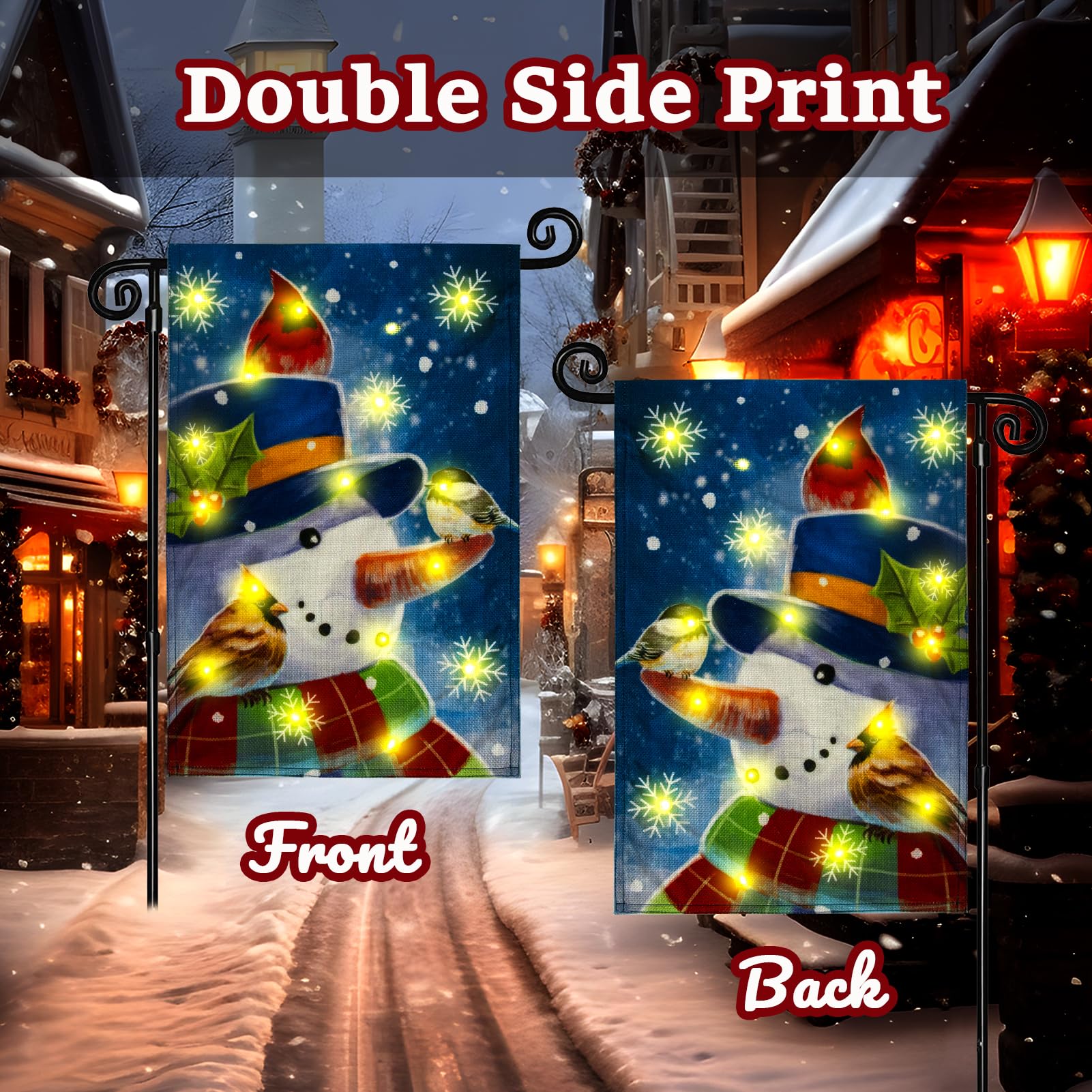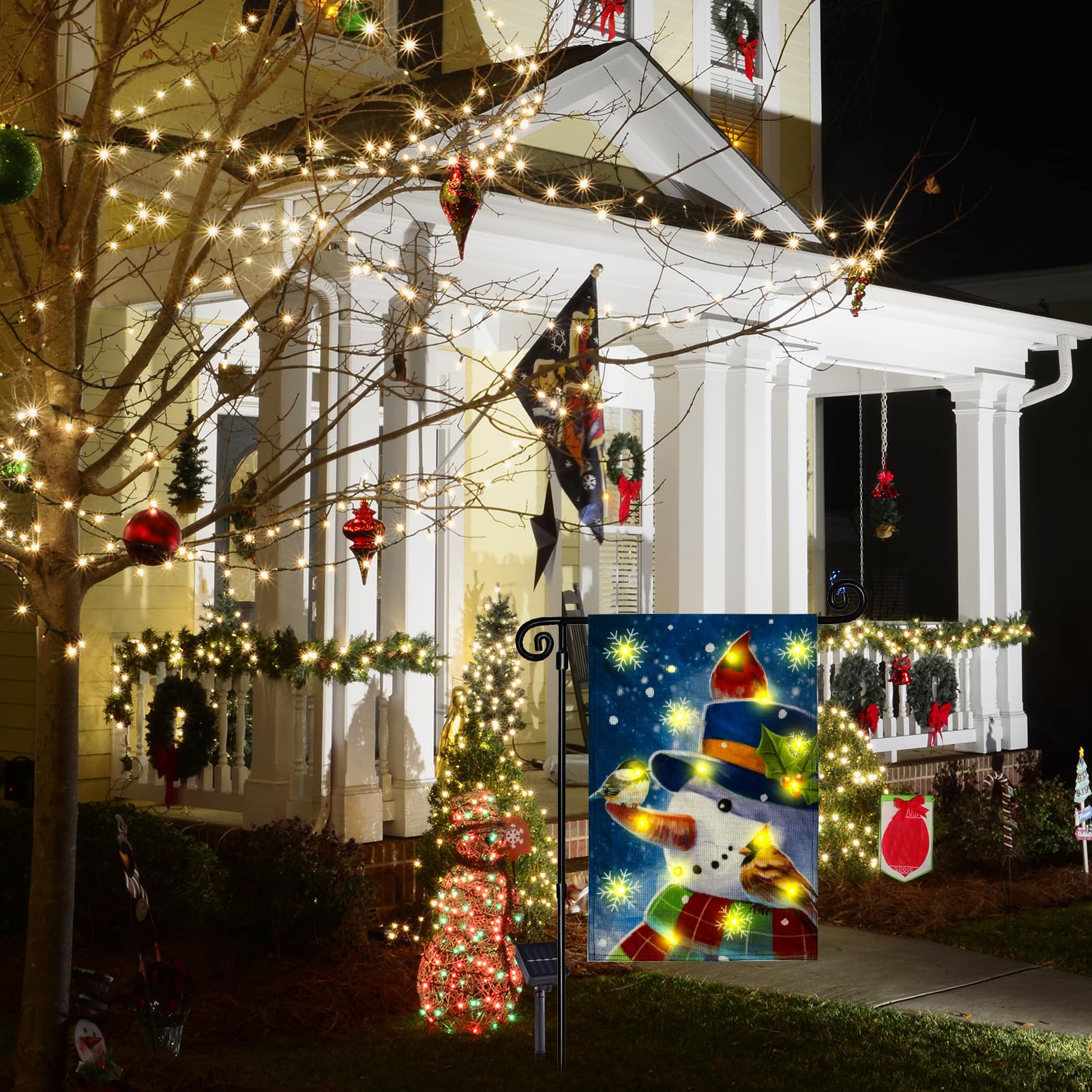 Christmas Lights Garden Flag,Double Sided Christmas LED Outdoor Christmas Yard Flag for Winter Christmas Outdoor Decoration (Multi_Snow, 12 * 18)