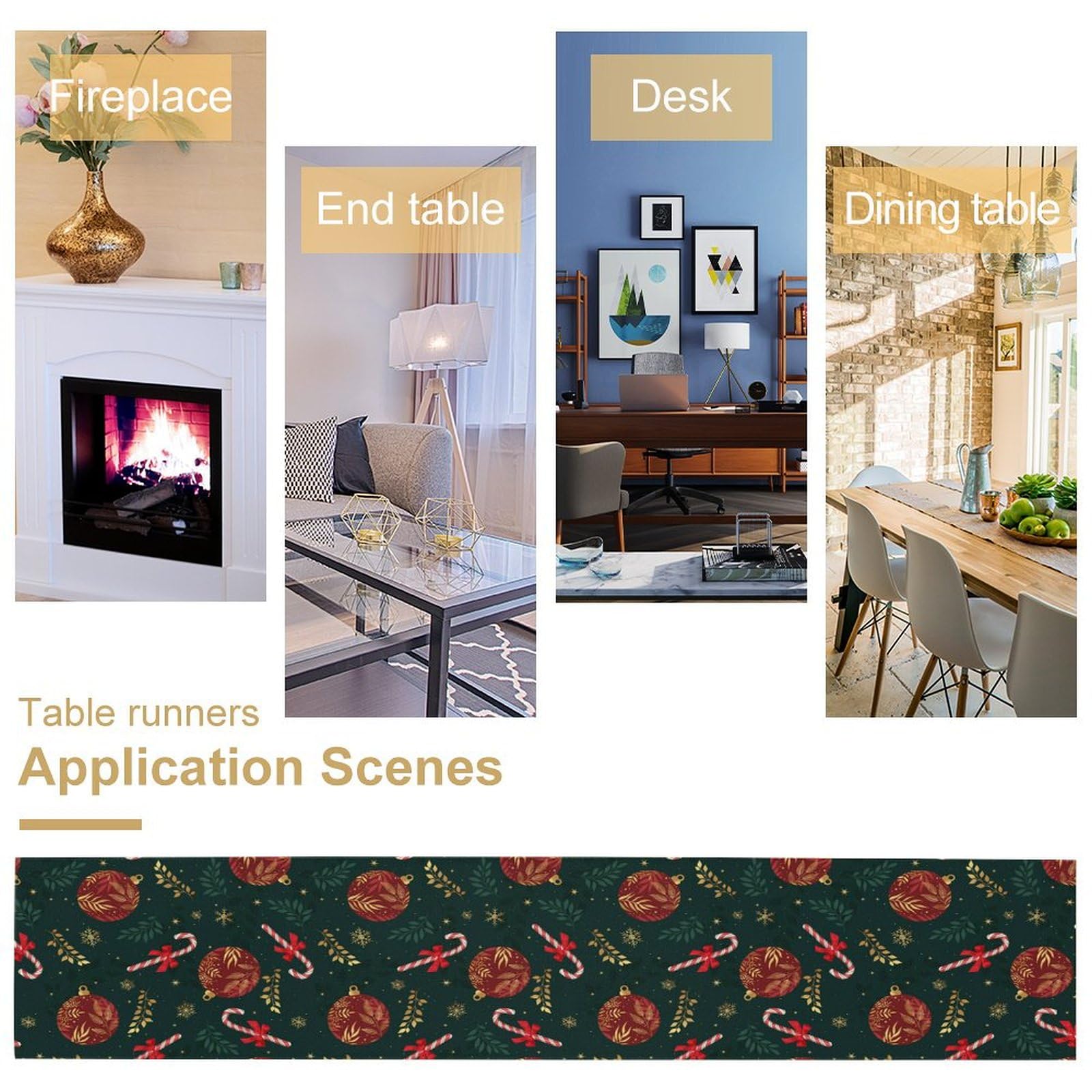 Christmas Table Runner,Green Red Xmas Balls Winter Holiday Dinner Table Decoration for Home Living Room Kitchen Dining Room 13x36in