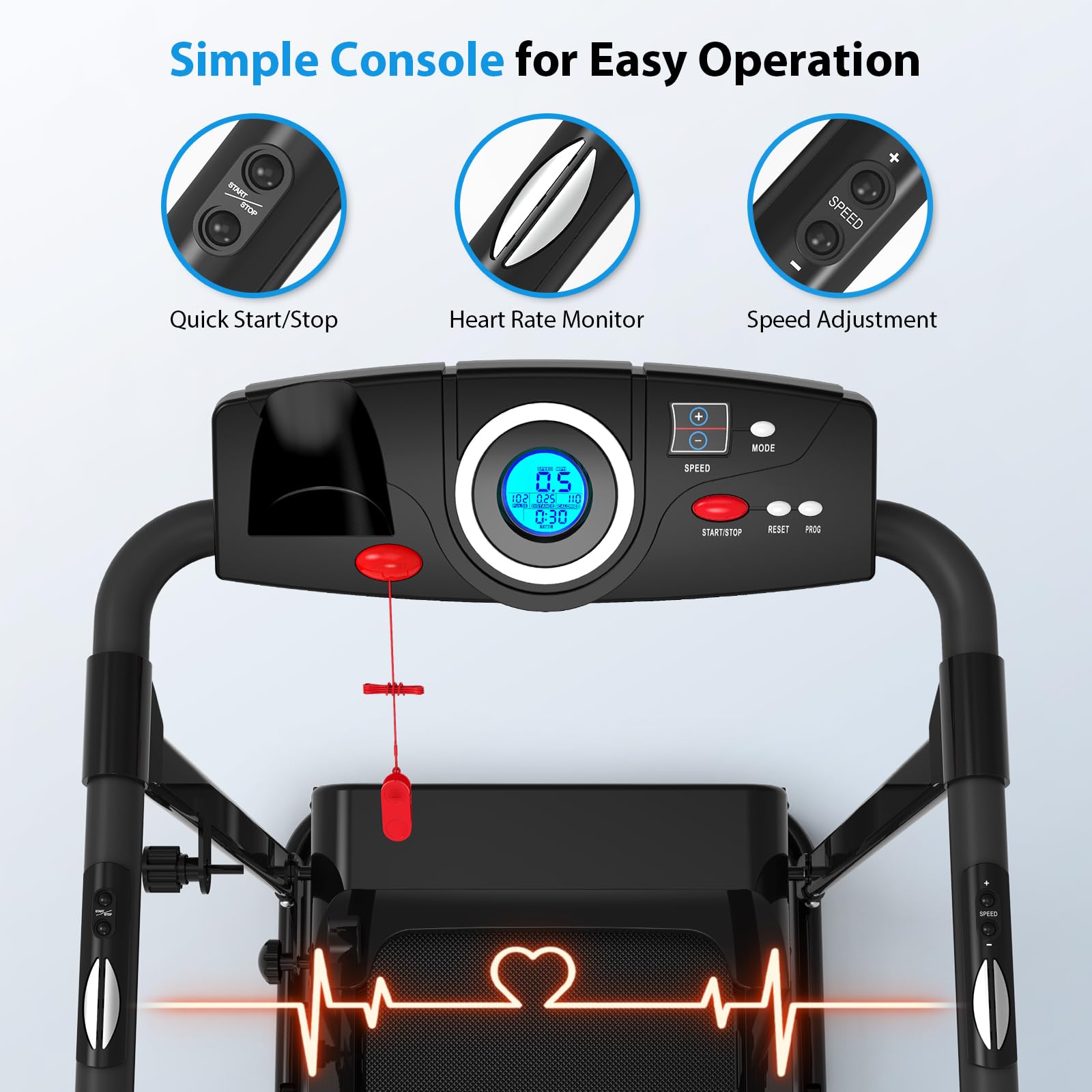 - 【Longer Handrails & Safety Key】When seniors use a treadmill, safety cannot be overlooked. Our senior-friendly treadmills come with long handrails and a safety key. The long handrails provide greater stability and a secure grip. In case of an accidental loss of balance, pulling the safety key stops the treadmill instantly, safeguarding our dear seniors right away.