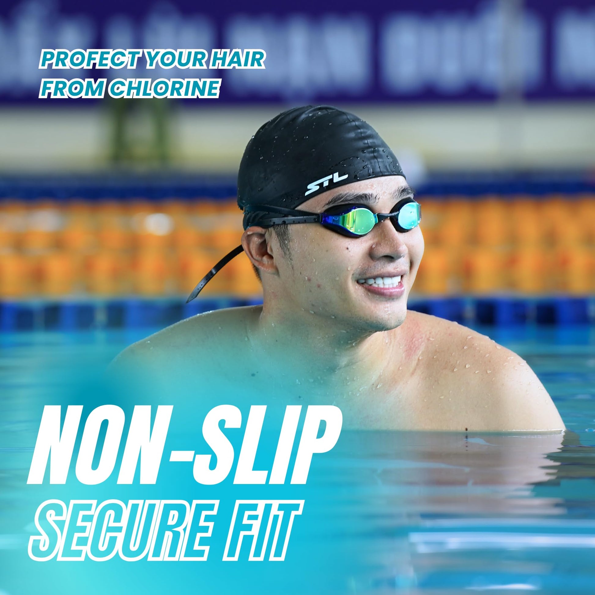 Classic Unisex Adult Swim Hats for Women, Men, Best Swim Cap to Keep Hair Dry, Silicone Bathing Caps, Gifts for Friend - Waterproof, Comfortable, Non-Slip (Basic Hat, Black)