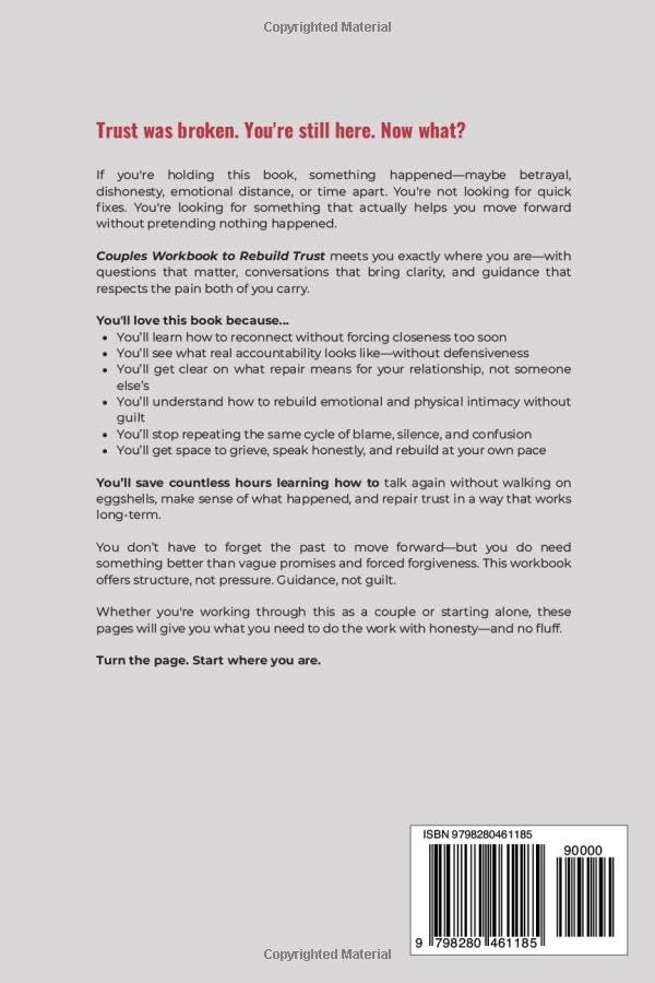 You’ll love this book because… You’ll finally have a way to talk about the breach without starting another argument It shows you what real accountability looks like—without long-winded guilt trips You’ll stop guessing when it’s the right time to reconnect physically You’ll learn how to deal with the awkwardness, distance, or silence after a major breakdown You’ll get questions that actually make space for clarity—not confusion You’ll rebuild slowly, intentionally—without acting like nothing ever happened And you'll stop feeling like you're walking on eggshells just to keep the peace