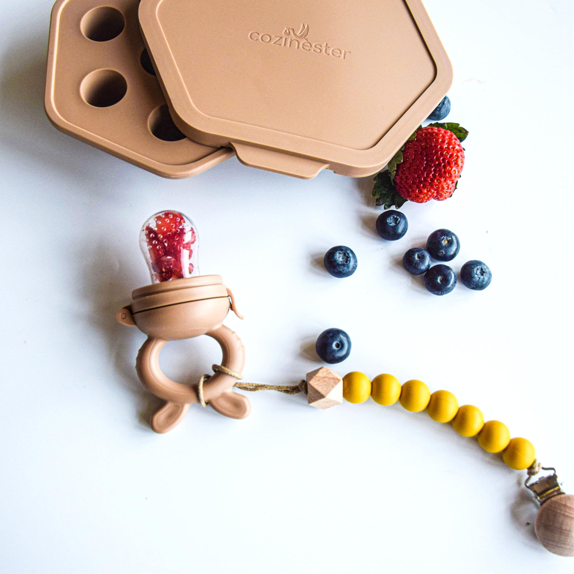 - 👶 Baby Fruit Feeder & Teething Pacifier: This baby fruit feeder and teething pacifier provides both nourishment and teething relief, allowing your child to enjoy fruits safely while soothing their gums with the comfort of a teether.