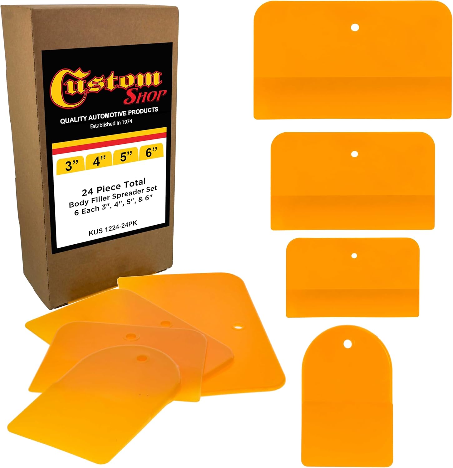 Custom Shop 4, 5, & 6 Inch Plastic Body Filler Spreader Tools (24 Pack) for Automotive Body Fillers, Putties, Glazes, Epoxy Resin, Caulk, Glues - Plastic Spreader Tool Variety Pack
