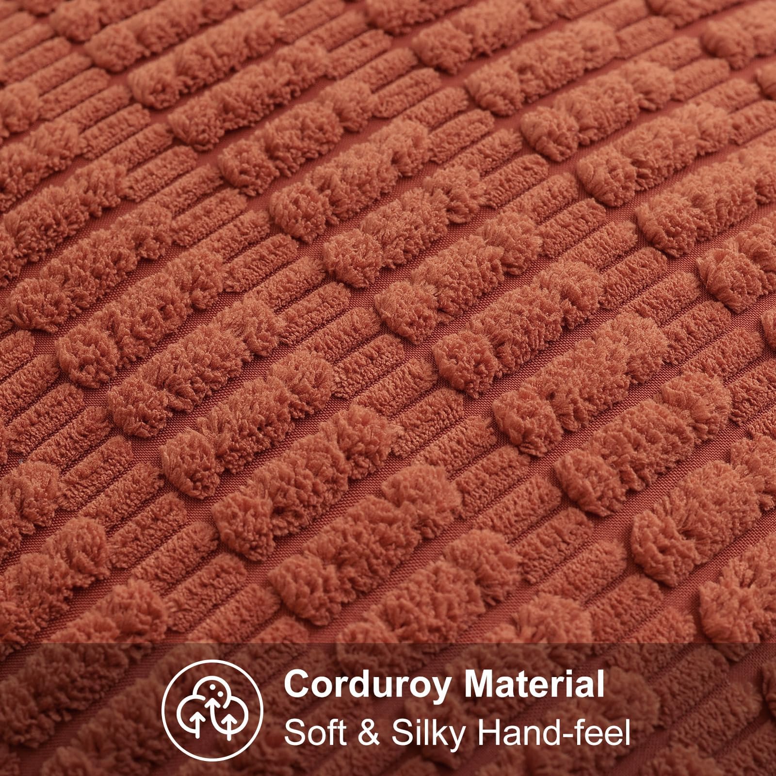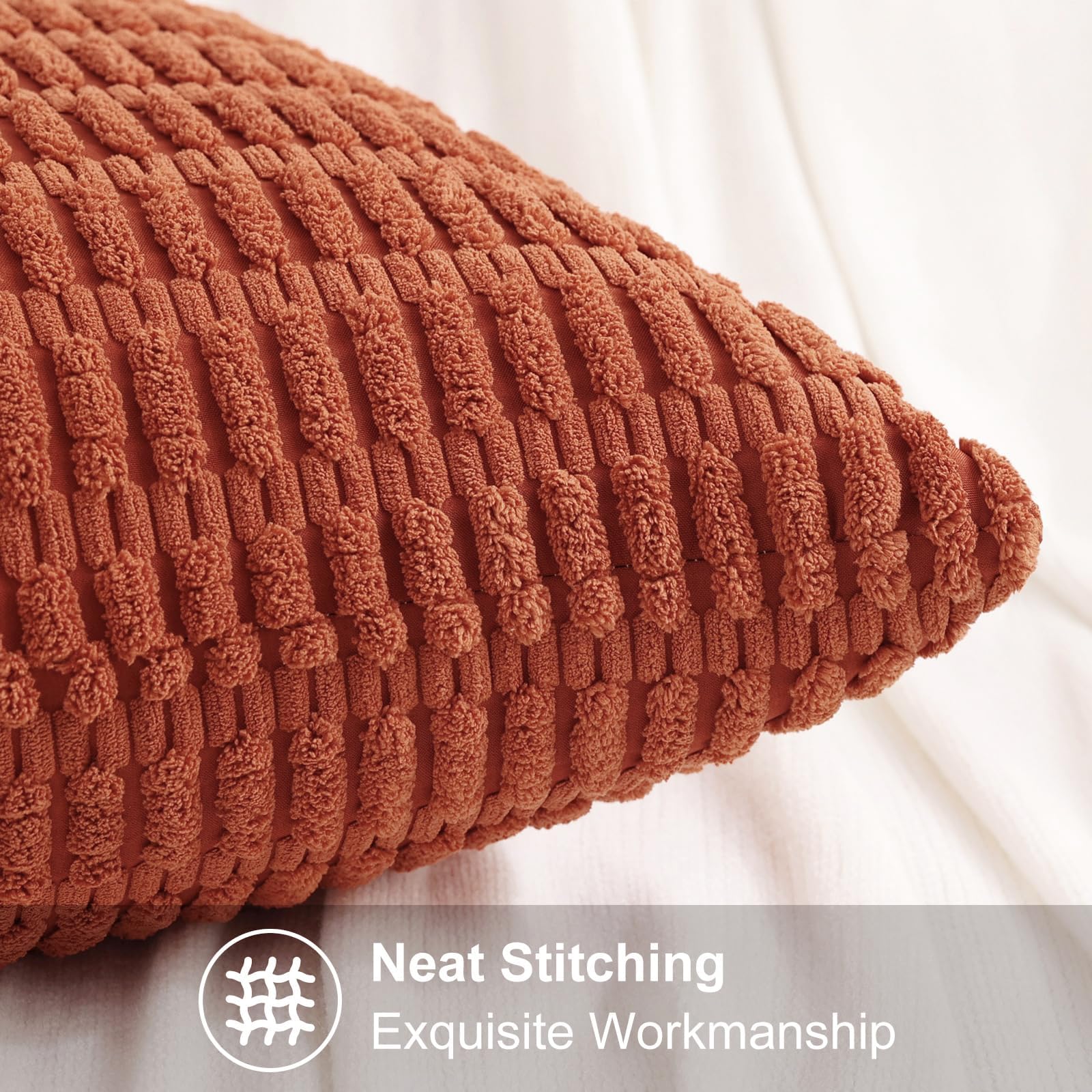decorUhome Rust Neutral Decorative Fall Throw Pillow Covers 24x24 Inch Set of 2, Boho Soft Corduroy Striped Square Pillow Covers Modern Twill Pillow Covers for Couch Bed Sofa Living Room