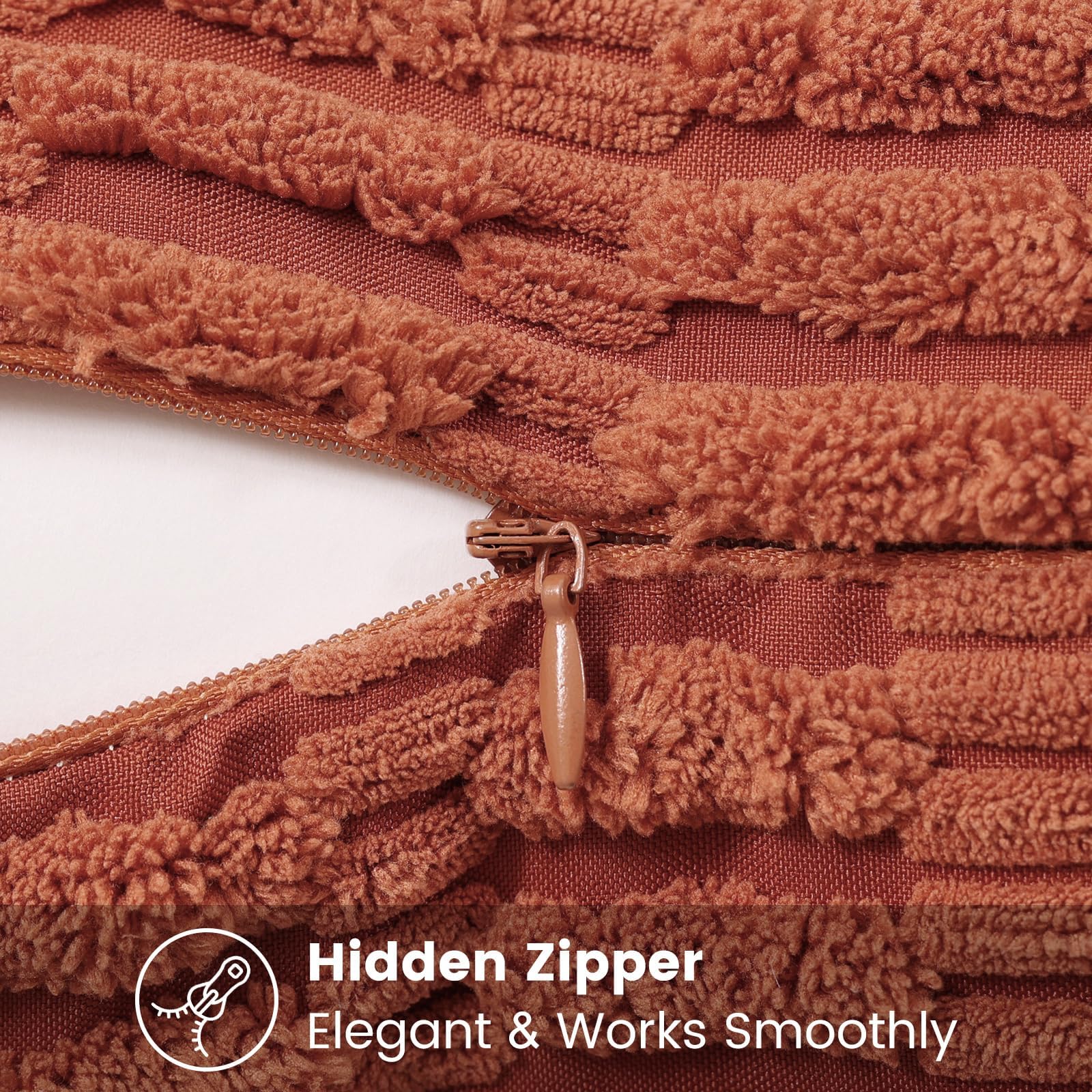 - Care Instruction: The rust pillow covers are easy to care for. It is recommended to hand wash. Machine washable in gentle mode. Tumble Dry Low. Do Not Iron