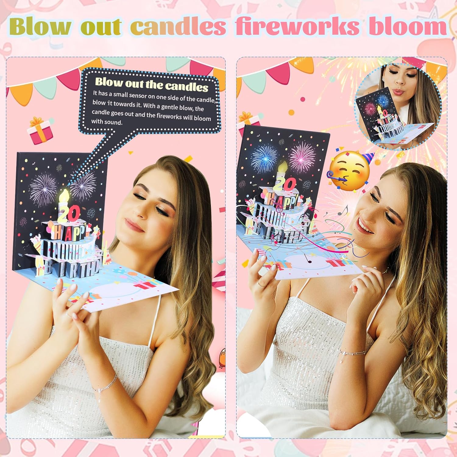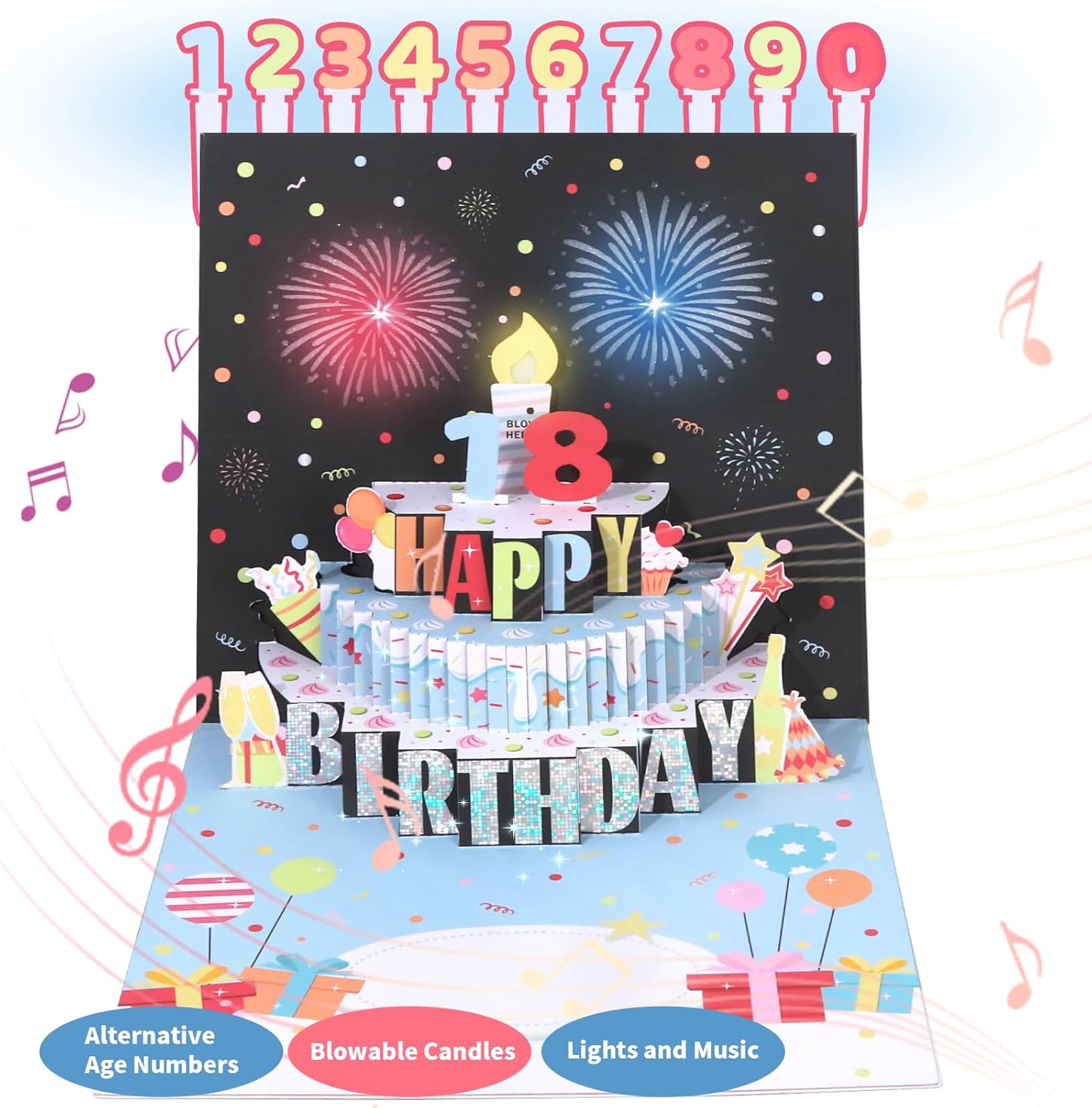 Decute 3D Pop Up Musical Happy Birthday Greeting Cards with Blowable LED Candle & Age Numbers Cards, Funny Card with Music & Cheers Sound, Best Birthday Gift for Women Mom Dad Husband Wife Sister…