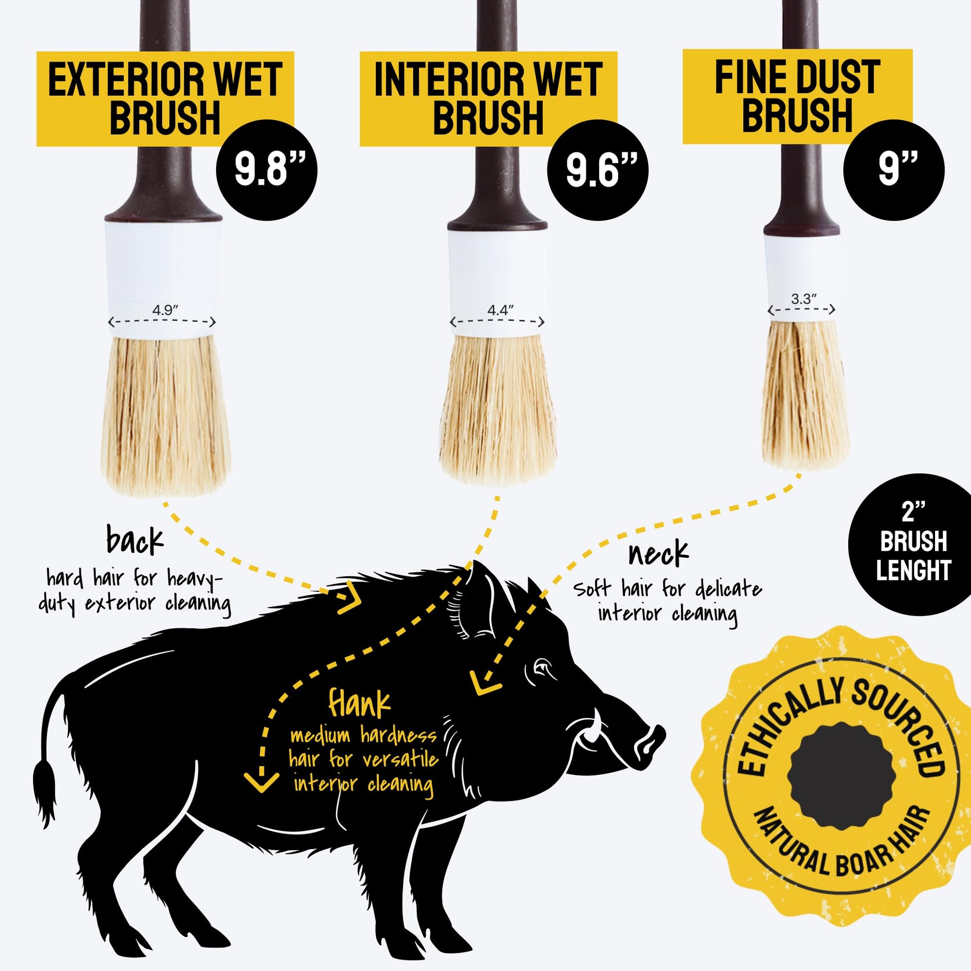 Detail Dudes Soft Boars Hair Car Detailing Brush Set for Washing (3 Pack) - Car Detailing Kit - Automotive Cleaning Brush
