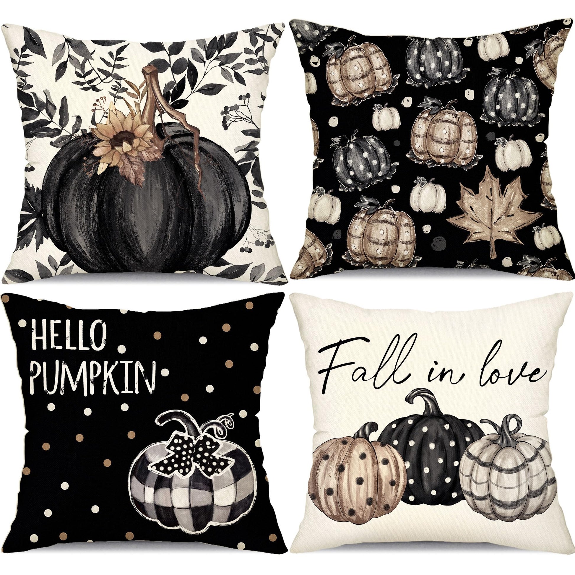 DFXSZ Fall Pillow Covers 18x18 inch Set of 4 Fall Decorational Various Styles of Pumpkin Fallen Leaves Decorative Black Autumn Outdoor Pillowcases Thanksgiving Decoration for Home Couch 211B18