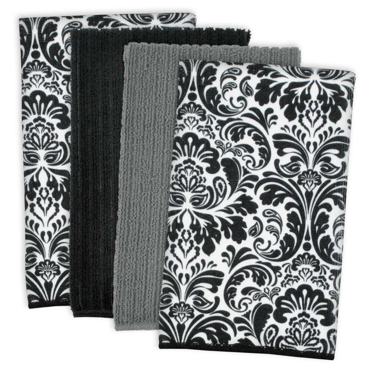 DII Cleaning Collection Multi-Purpose Microfiber, Gray Stripes, Dishtowel Set
