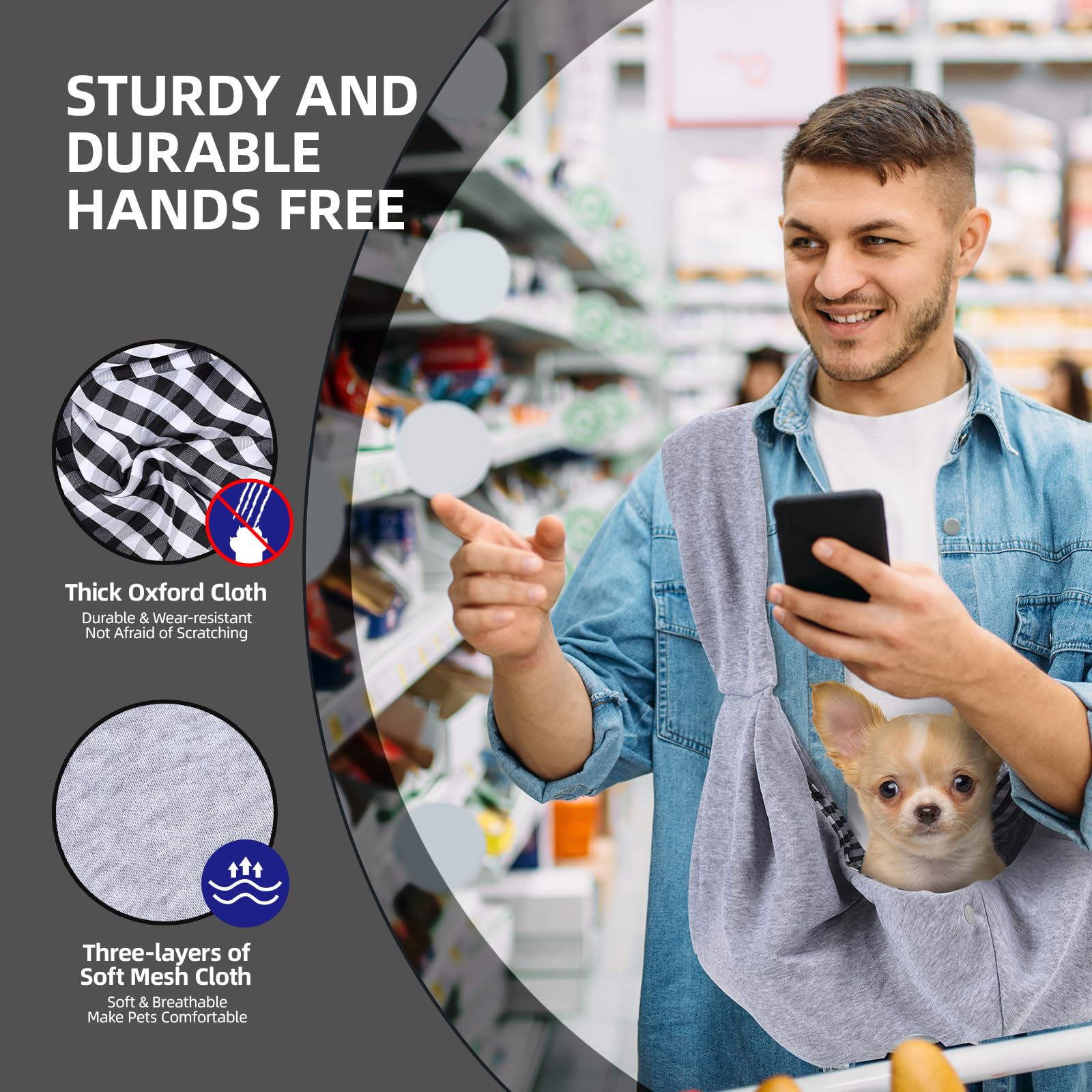 Dog Carrier Sling - Reversible Puppy Carrier Purse with Storage Pocket, Hand-Free Dog Sling Carrier for Carry Small Dogs and Cats, Travel Safety Harness, Dog and Cat Harness(Black)