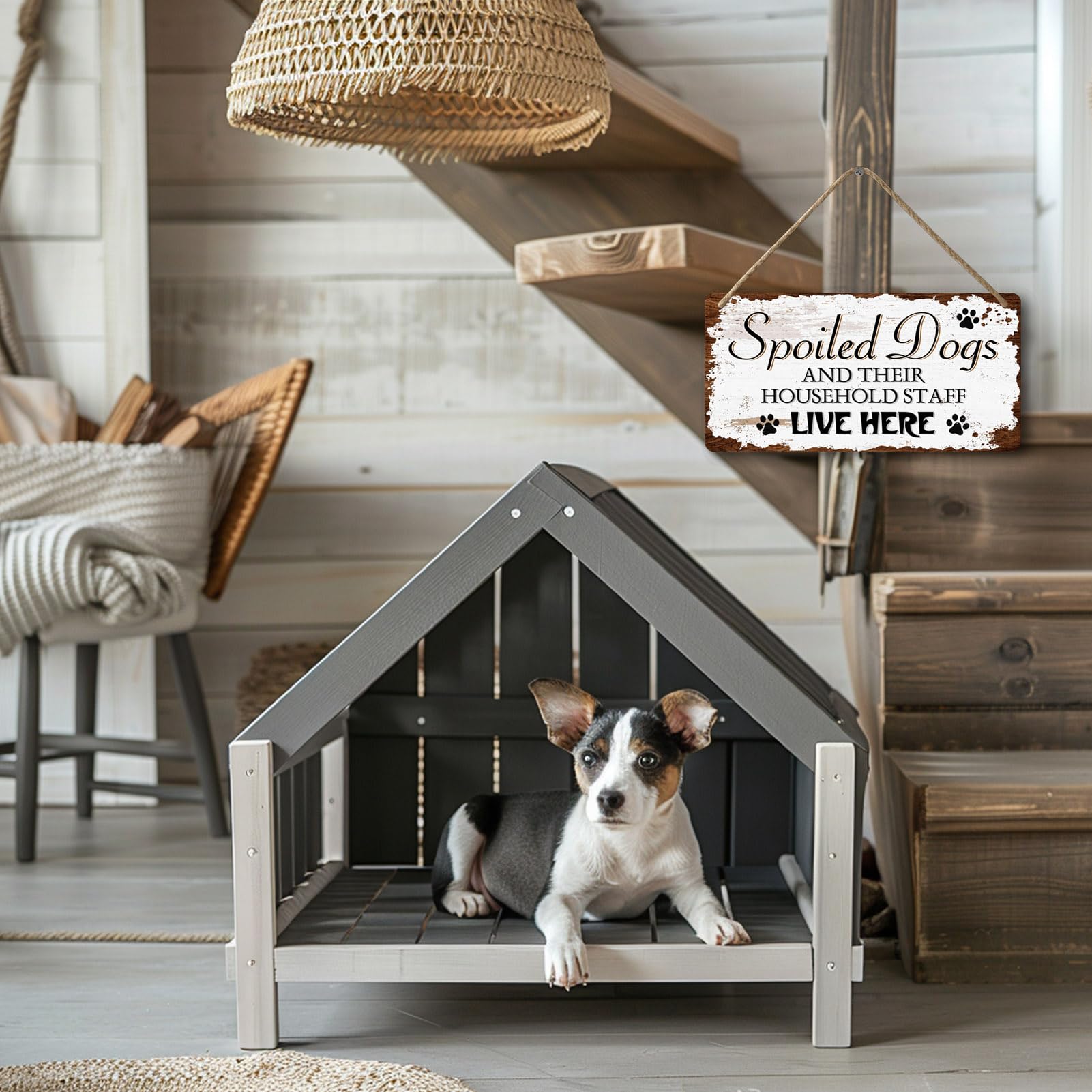 - SIZE FOR DOG SIGNS : 12 x 6 inch personalized text ' Spoiled Dogs And Their Household Staff Live Here ' to add fun and color to your dog room.