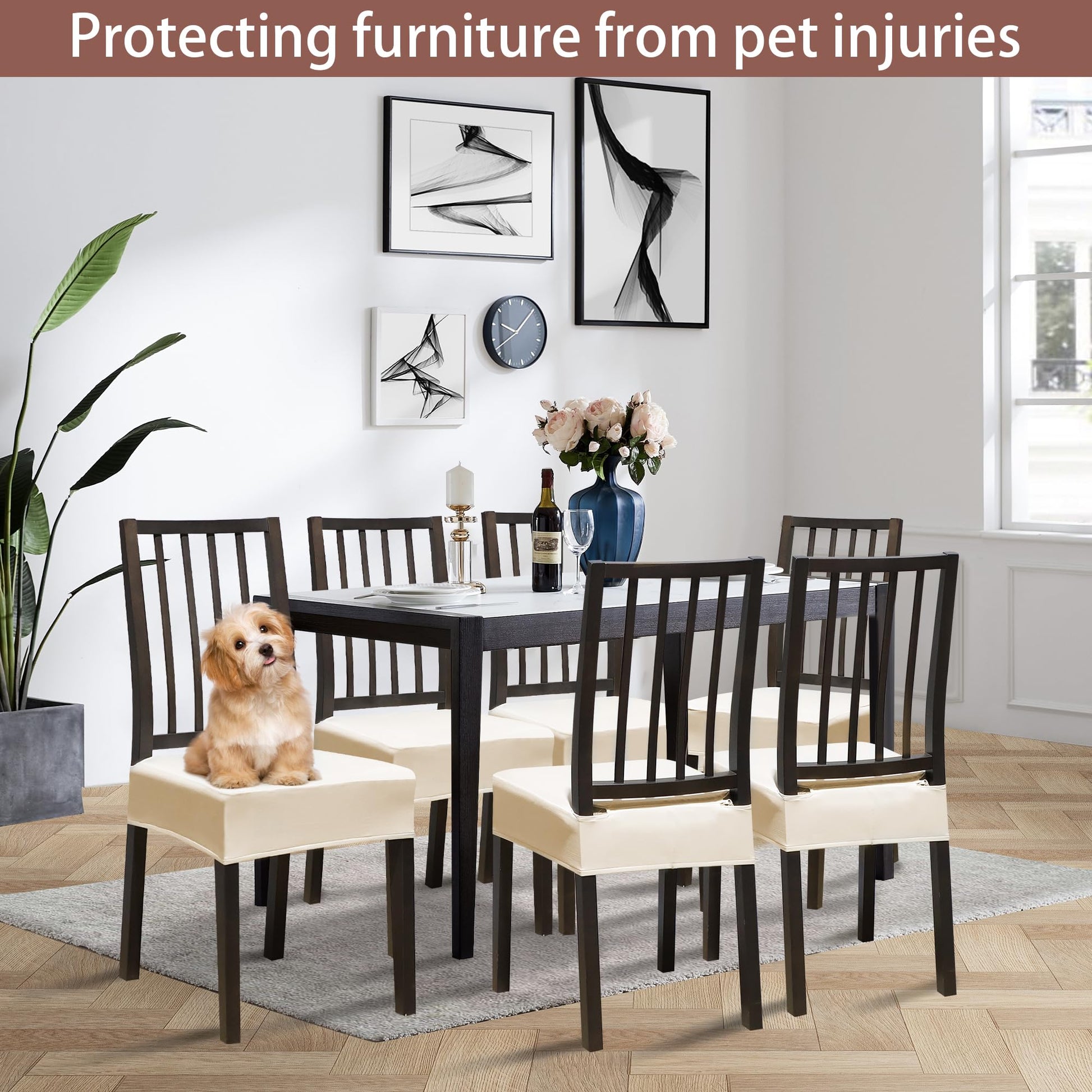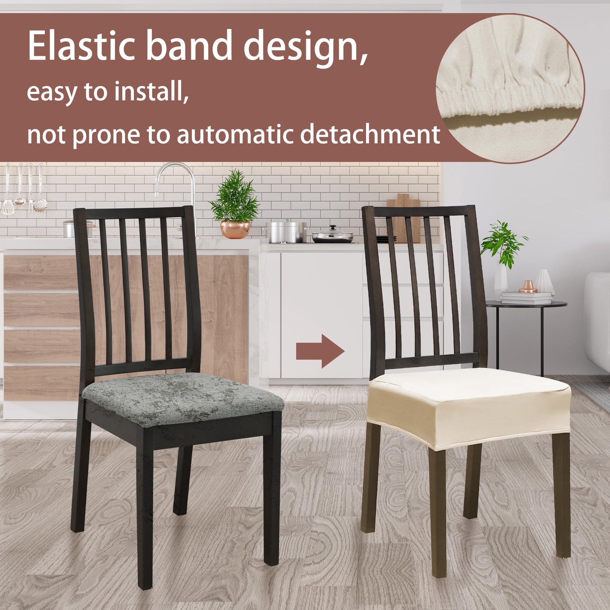 DREAHOTEXTIL Dining Chair Covers,Seat Covers for Dining Room Chairs Set of 4,Stretch Kitchen Chair Covers,Removable Washble Dining Room Chair Seat Cover,Chair Slipcovers Protector (Beige,with Zipper)