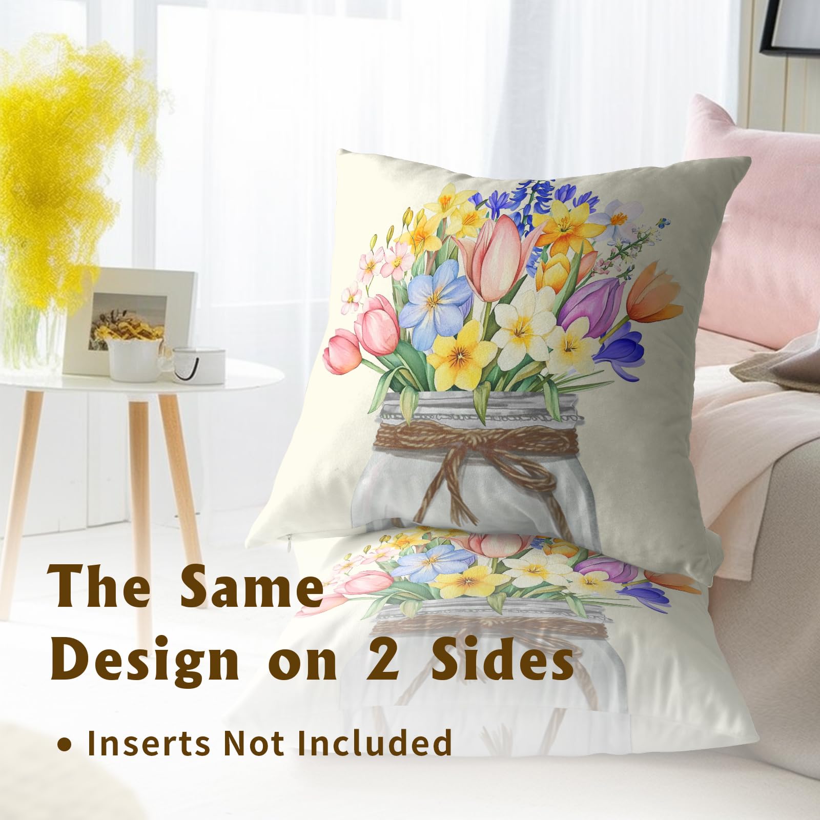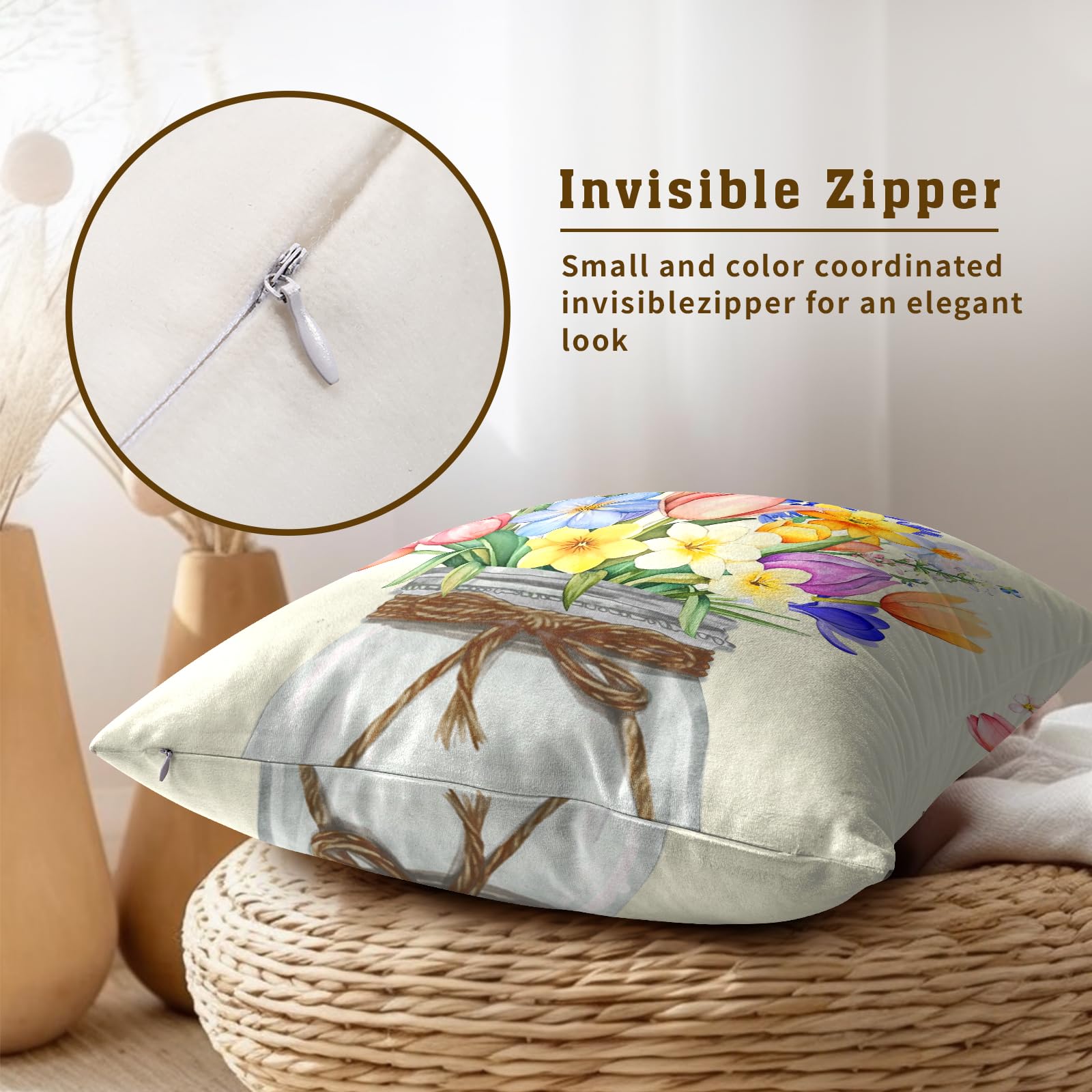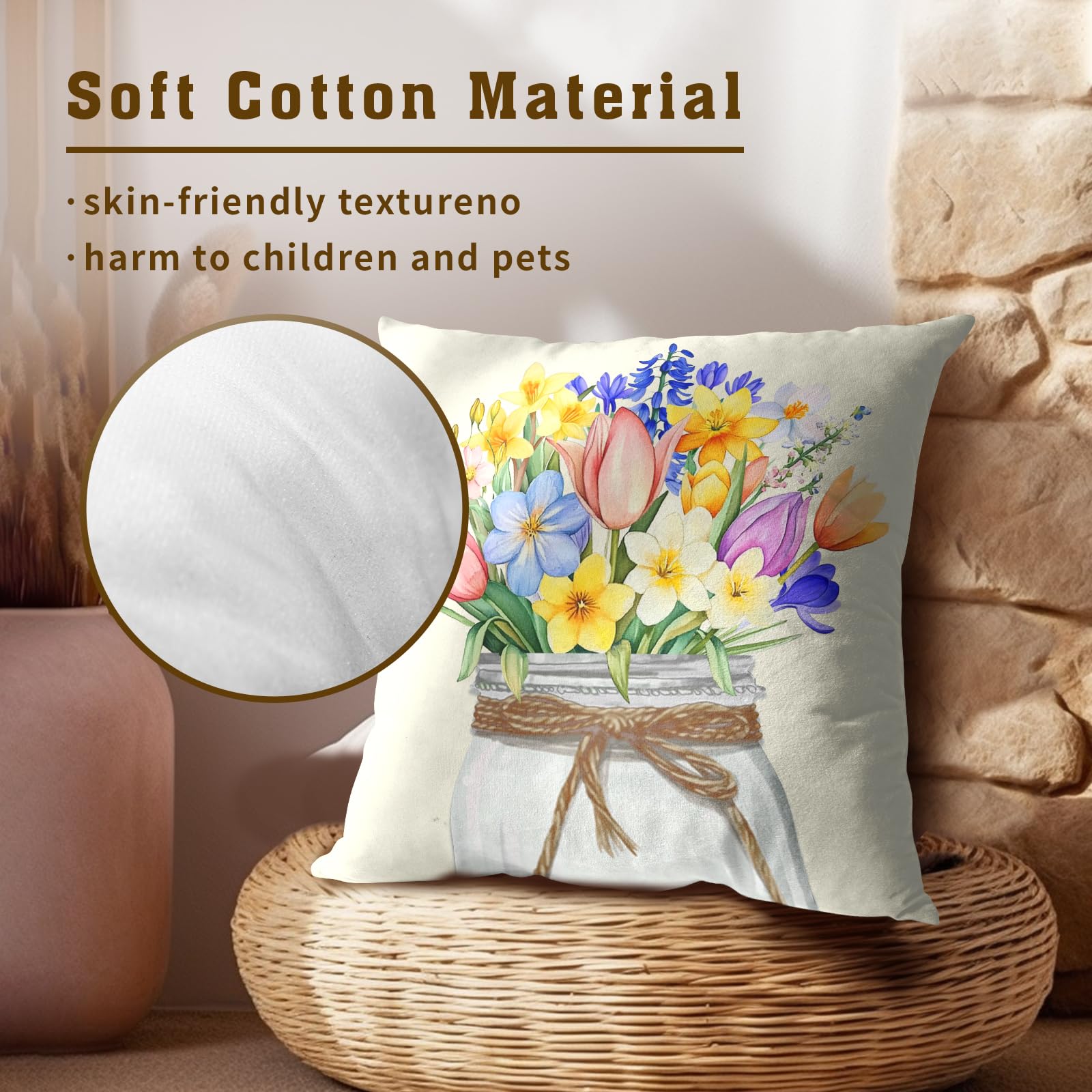 - 【High Quality Material】-These spring flowers pillow covers are made of high quality classic soft cotton fabric that is super soft, comfortable and warm to touch. Accompanied by the top quality invisible zipper and allows easy insertion and removal of inserts.