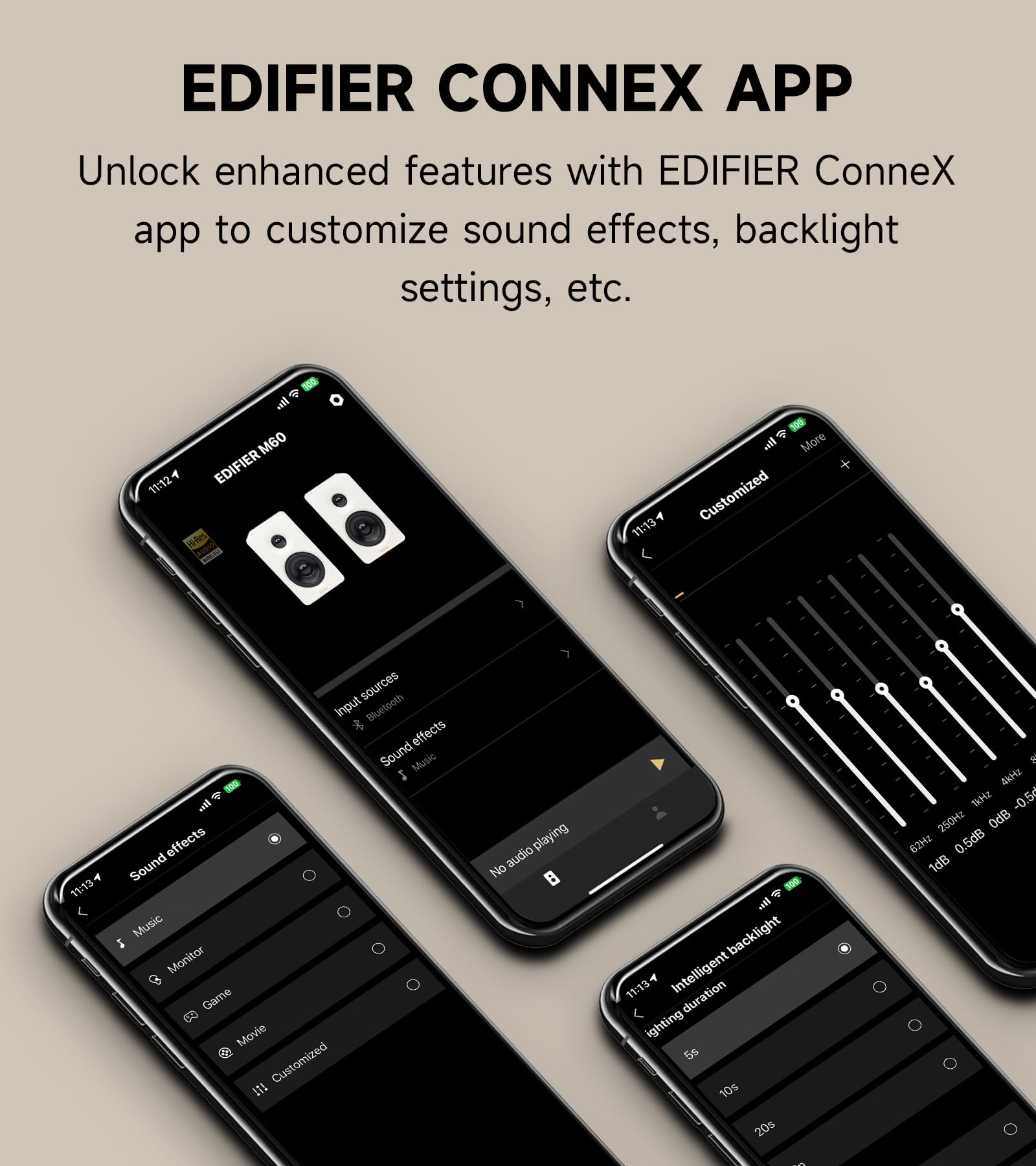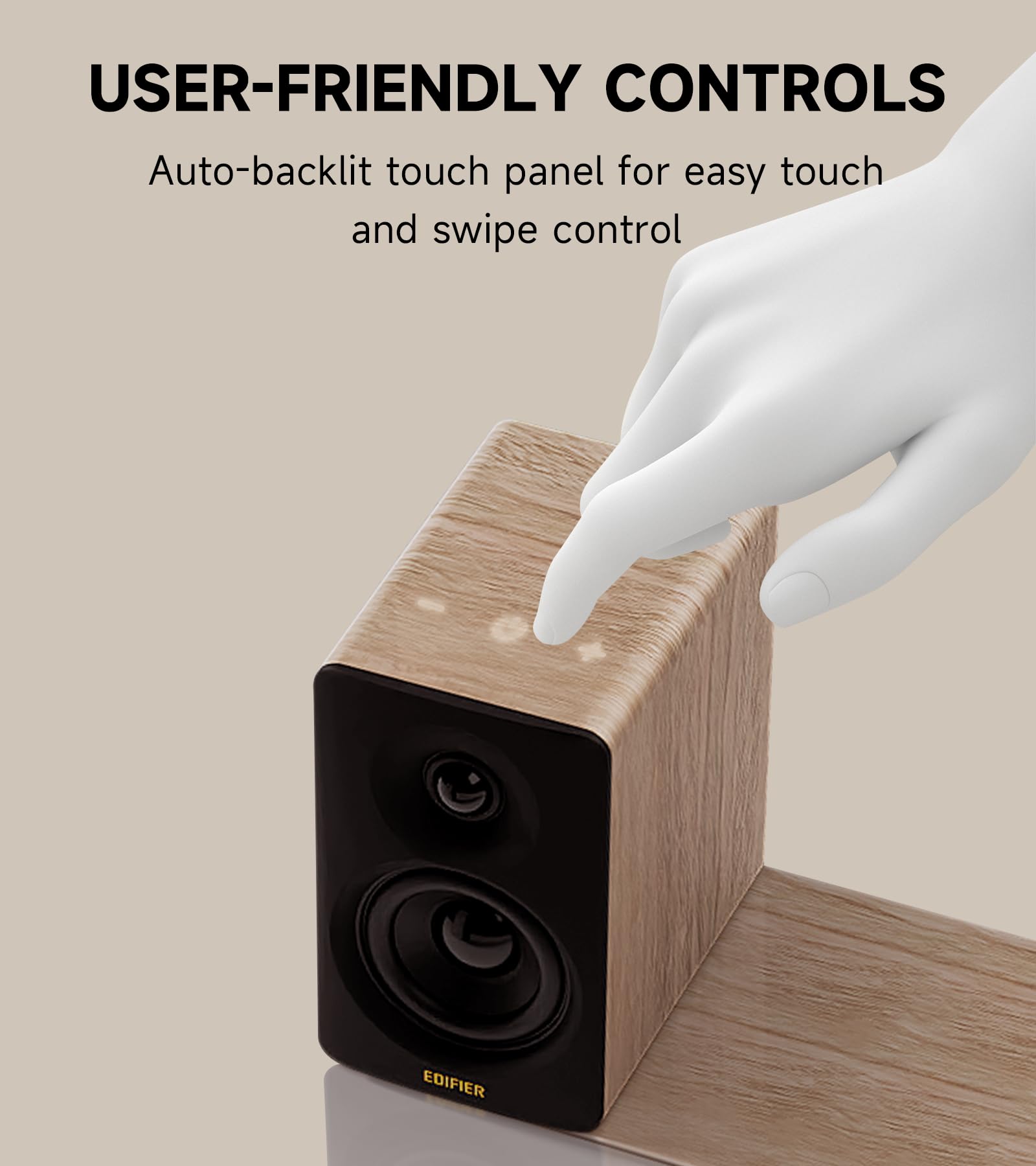 - [User-Friendly Control] Enjoy intuitive control with a cap-sensitive touch panel, featuring an automatic backlight that activates as your hand approaches and turns off automatically. Download the EDIFIER ConneX mobile app for extended functions