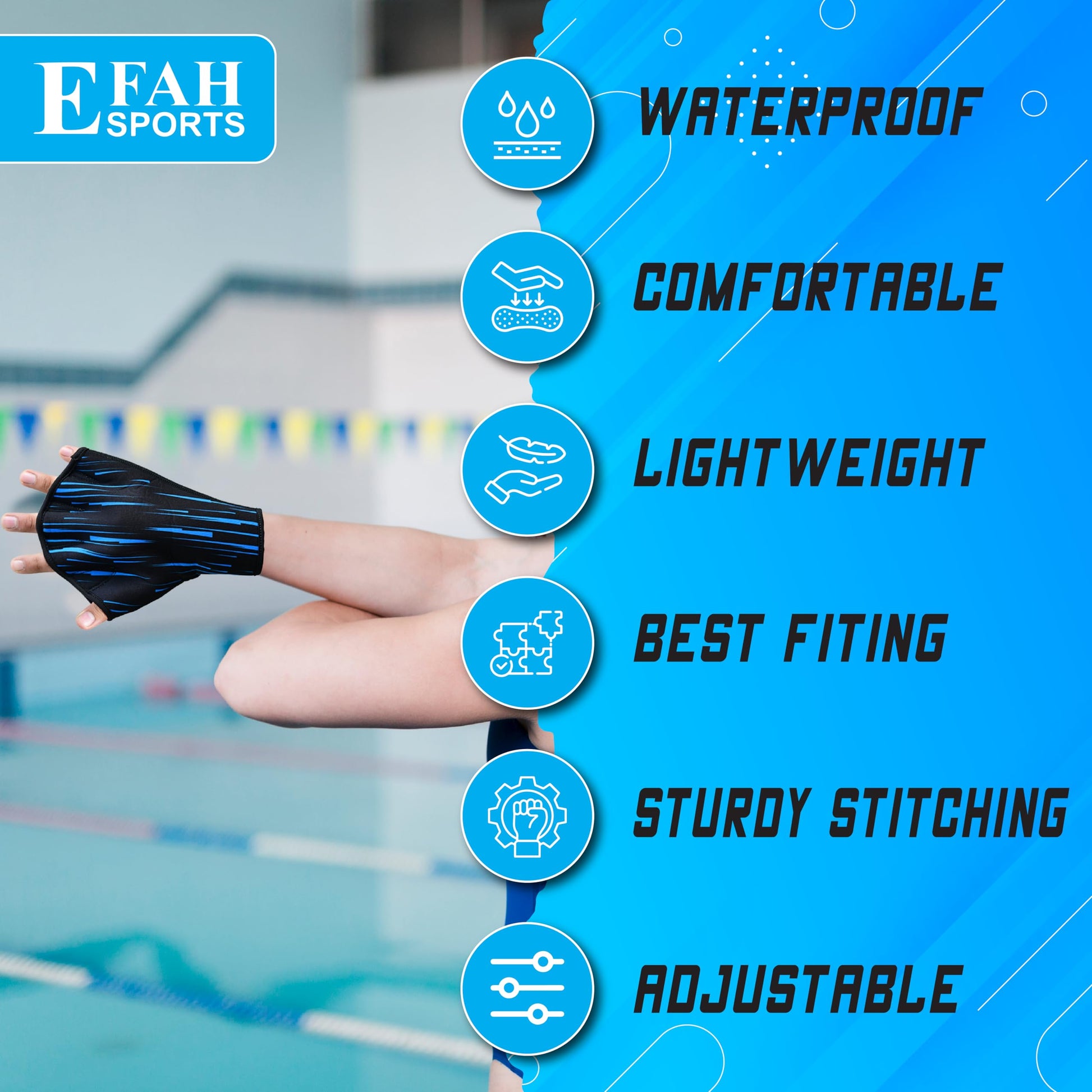 EFAH SPORTS Swimming Gloves Aquatic Swim Training Glove Neoprene Webbed Fitness and Water Aerobics Resistance Gloves for Men Women Children (Blue X-Small)