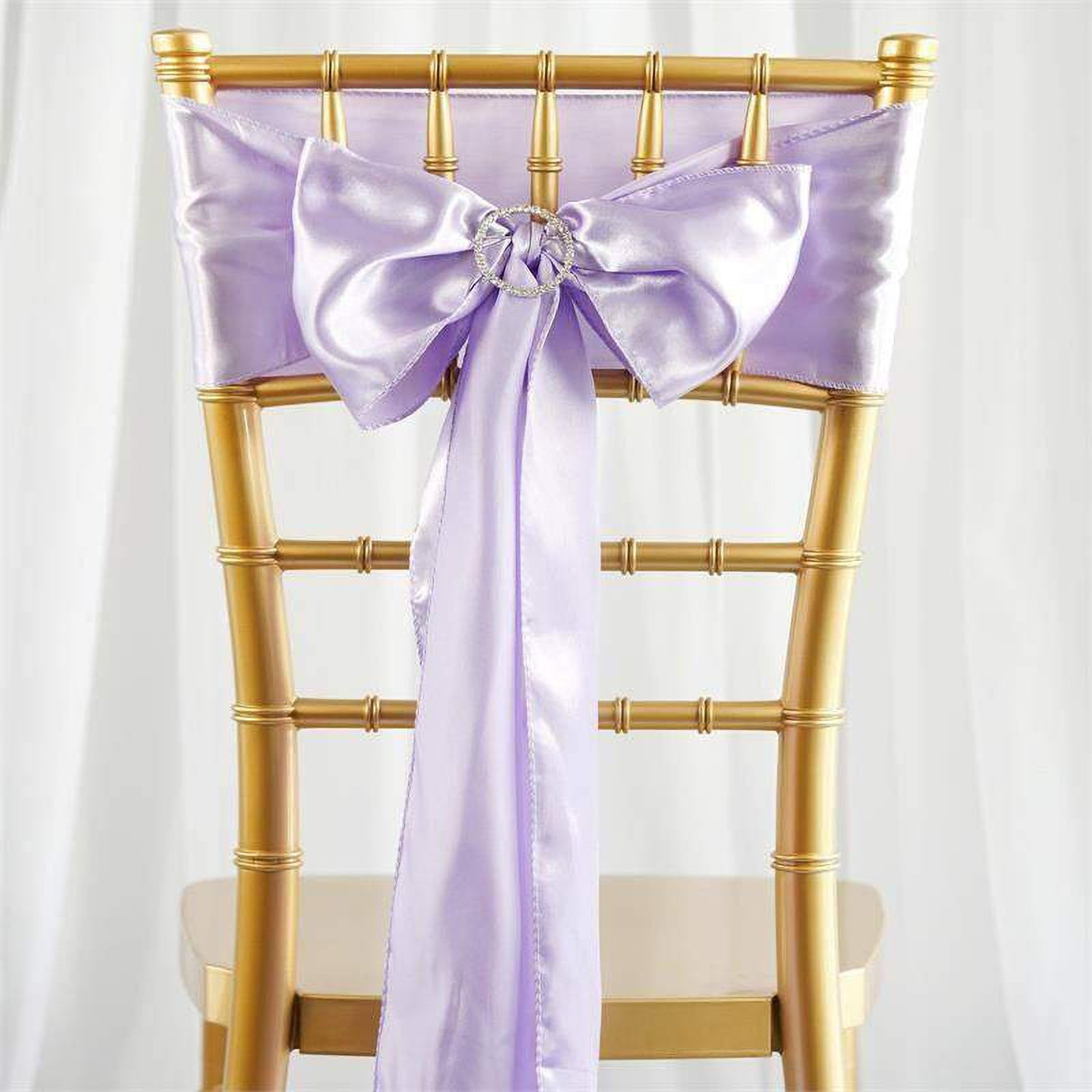 Efavormart 25pcs Lavender Satin Chair Sashes Covers Tie Bows for Wedding Events Decor Chair Bow Sash Party Decoration Supplies 6 x106