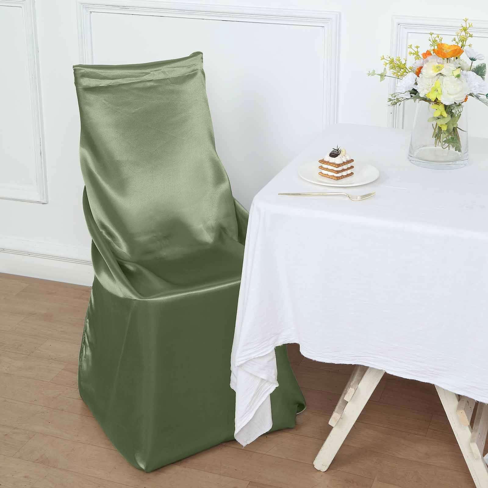 Efavormart Dusty Sage Green Chair Covers for Party 1 PCS Satin Self Tie Universal Banquet Wedding Folding Chair Cover for Dining Chairs Washable Slipcovers for Outdoors Events