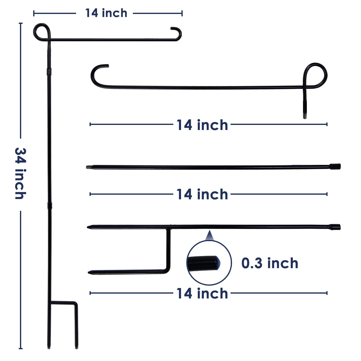 - EASY ASSEMBLE & INSTALL- It's very easy to assemble. Our garden flag holder is equipped with screwing-in joints, which ensure strong connection that make 3 pieces into one piece. 10cm wider pointed feet to provide the maximum stability on the ground.