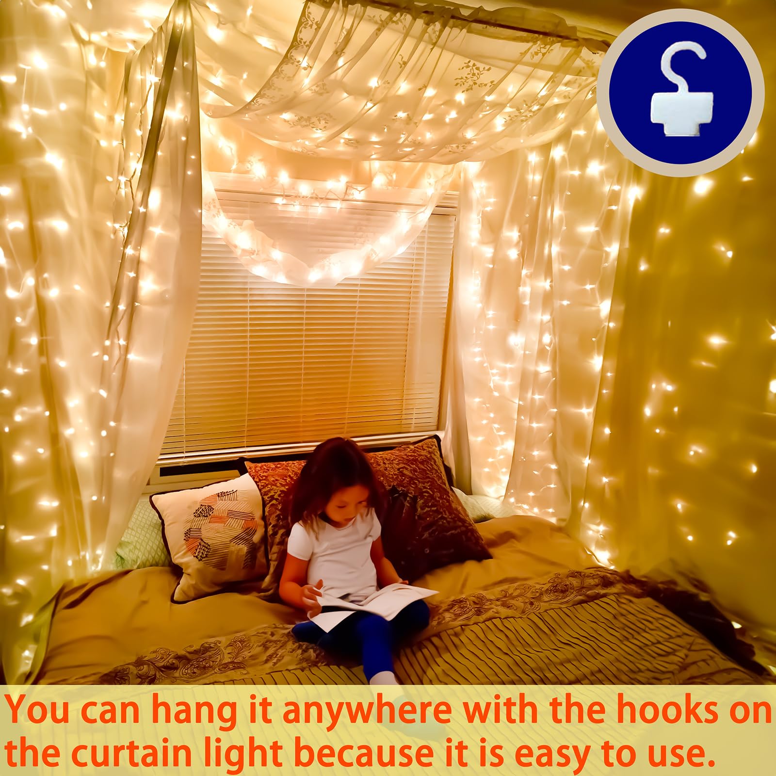 Eueasy 2 Pack Warm White 300 LED Curtain Lights, 9.8ft x 9.8ft Fairy Lights with 8 Modes, String Hanging Lights, Remote Control, Perfect for Indoor/Outdoor Christmas, Wedding, Party Wall Decorations