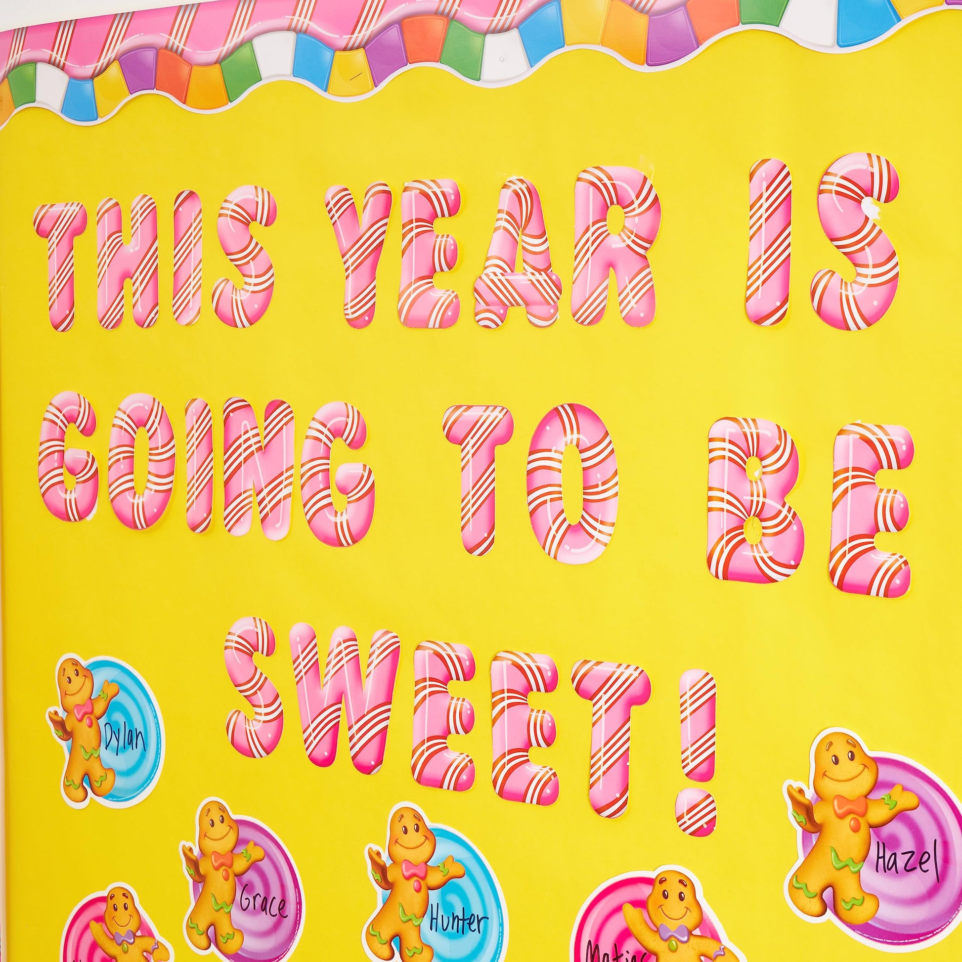 Eureka's Candy Land themed punch-out classroom number and letter decorations for preschool teacher and elementary school teachers are the perfect way to make a classroom feel warm and welcoming. Use them to create the alphabet over your blackboard, to put a welcoming message on your door or window -- you can even use our classroom letters for bulletin board displays! A versatile addition to any back to school teacher's supplies kits. Classroom wall decorations and bulletin board accessories set includes (176) Candy Land characters (uppercase letters, numbers, and punctuation marks) that measure approximately 4'' high each.
