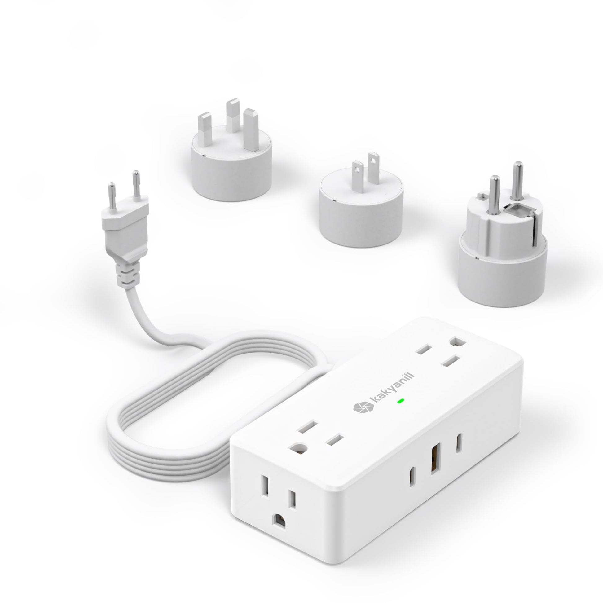 European Travel Plug Adapter, EU/UK/US Travel Plug Adapter Power Strip, 6 AC Outlets, 4 USB Ports (2 USB C), 3ft Wrapped Around Extension Cord, Universal Travel Adapter