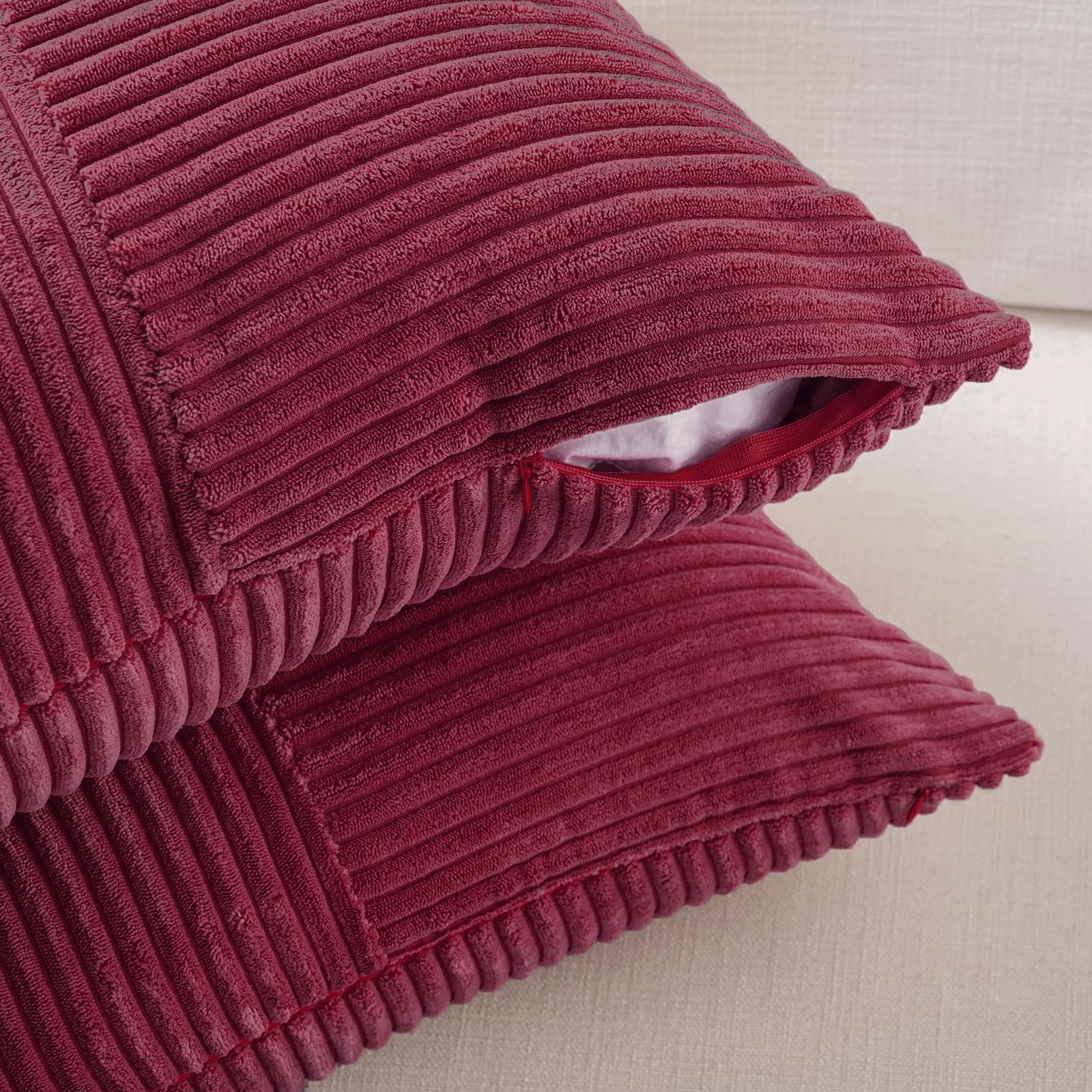 Fancy Homi 2 Packs Burgundy Lumbar Decorative Throw Pillow Covers 12x20 Inch for Living Room Couch Bed, Farmhouse Boho Home Decor, Soft Striped Corduroy Rectangle Accent Cushion Case 30x50 cm