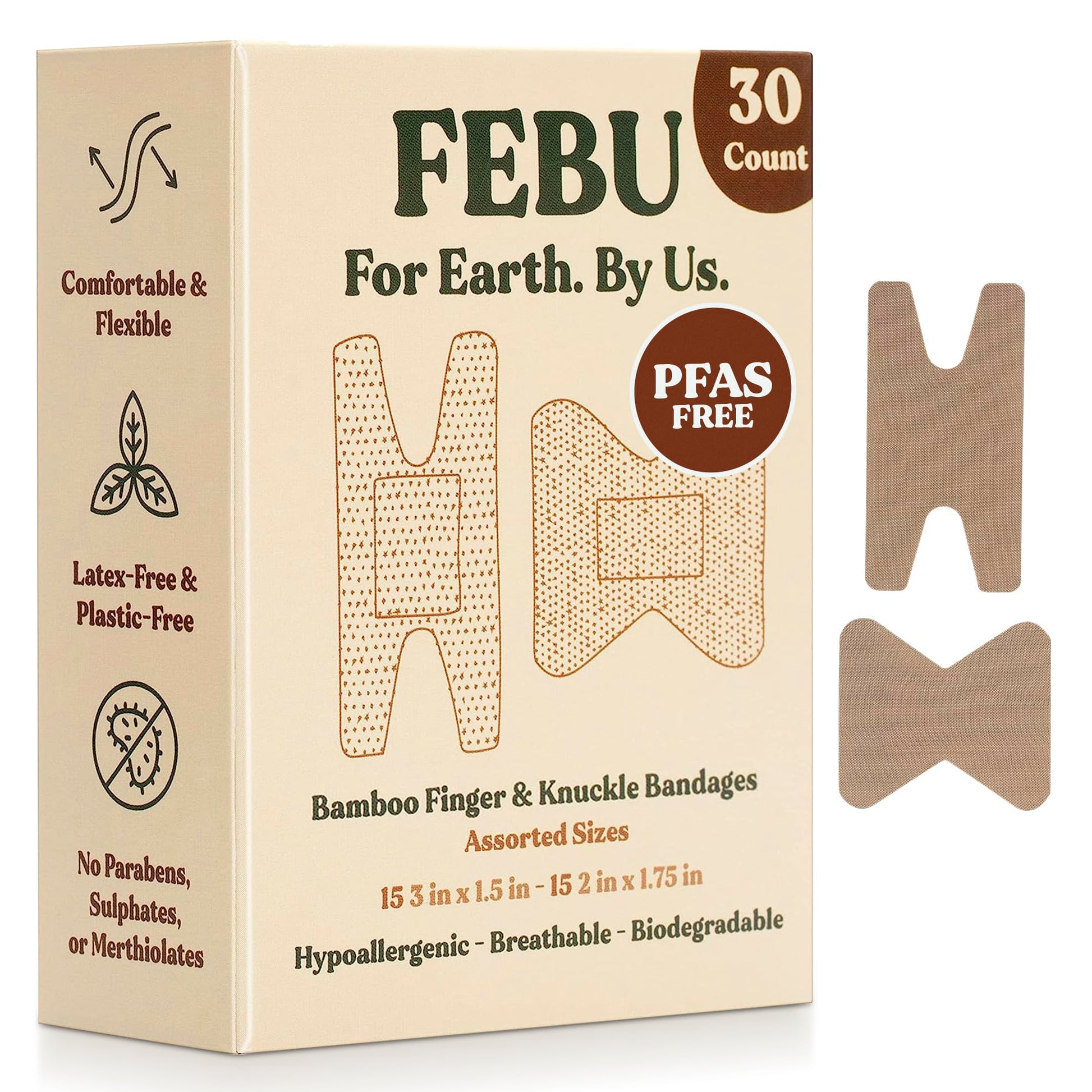 FEBU Eco-Friendly Bamboo Fabric Bandages | PFAS Free Flexible Fabric Bandages | Natural Hypoallergenic Bandage for Scrapes, Cuts & First Aid | Fully Compostable, Latex Free Bandage | 75 Count Strip