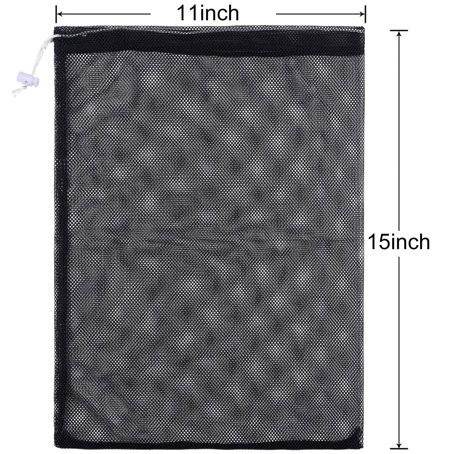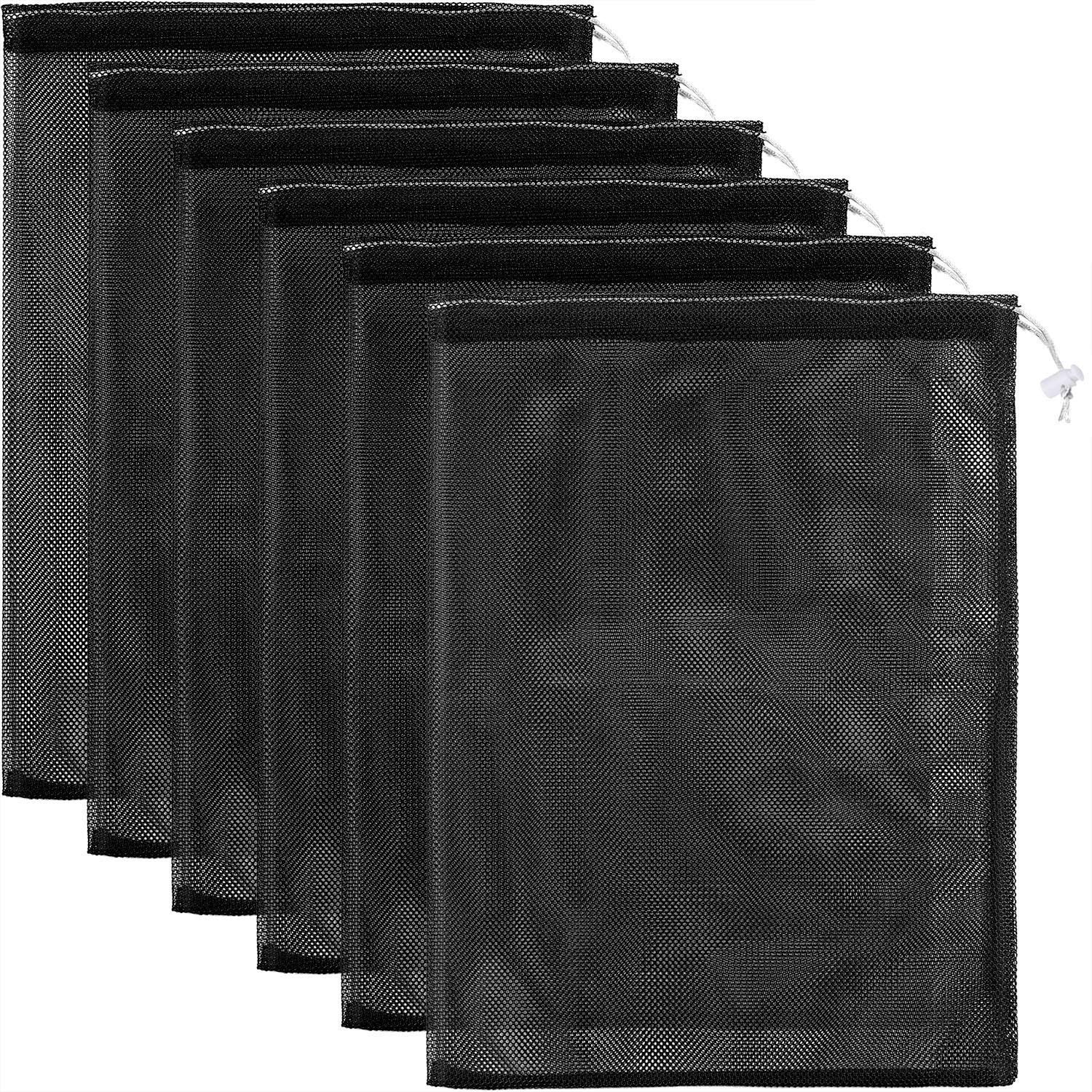 Frienda 6 Pieces Mesh Stuff Sack, 11 x 15 Inch Durable Nylon Drawstring Laundry Bag for Rinsing Beach Toys, Seashell Collecting, Mesh Bags and Travel(Black)