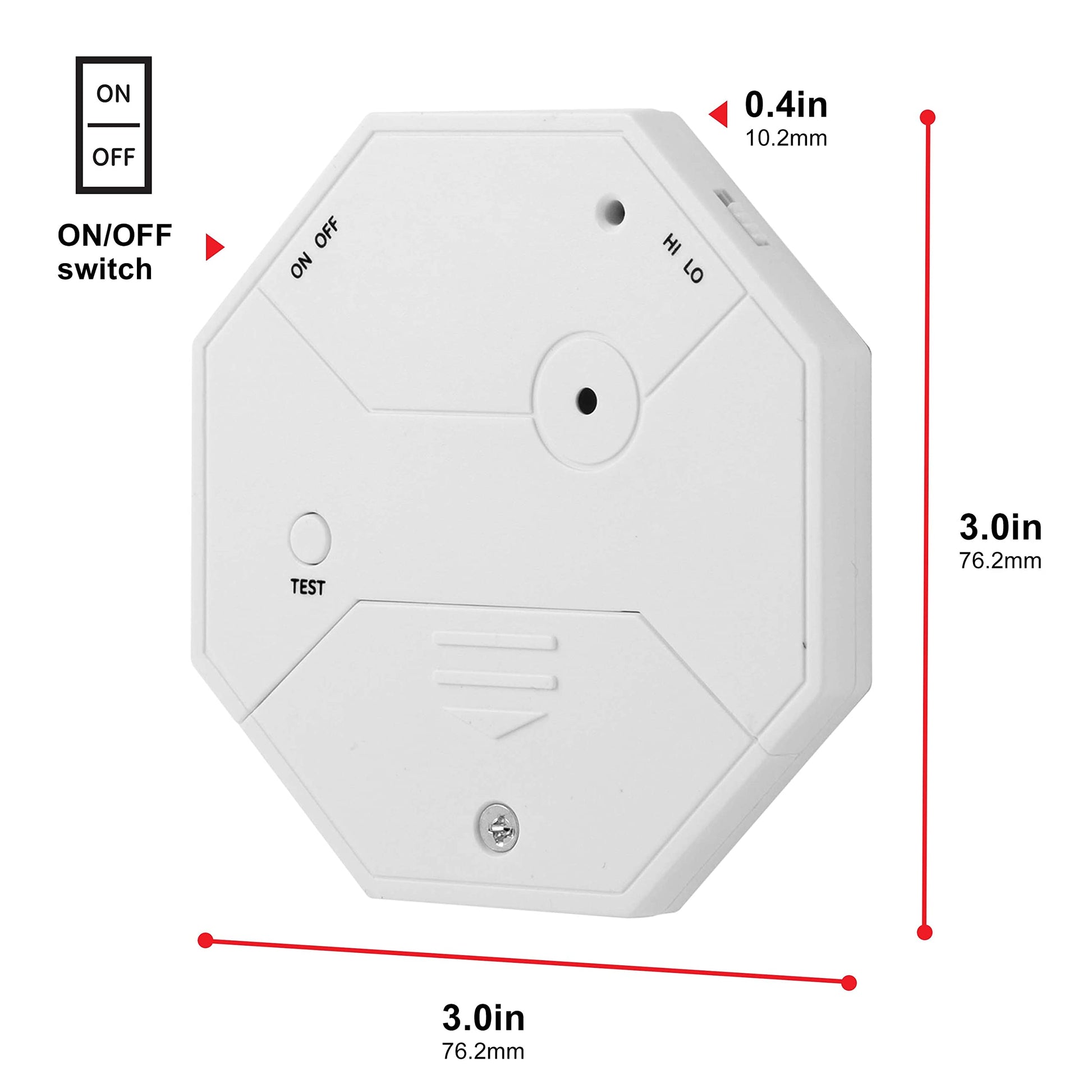 - Battery Operated – High/Low sensitivity selection, with battery test button (4 LR44 batteries included)