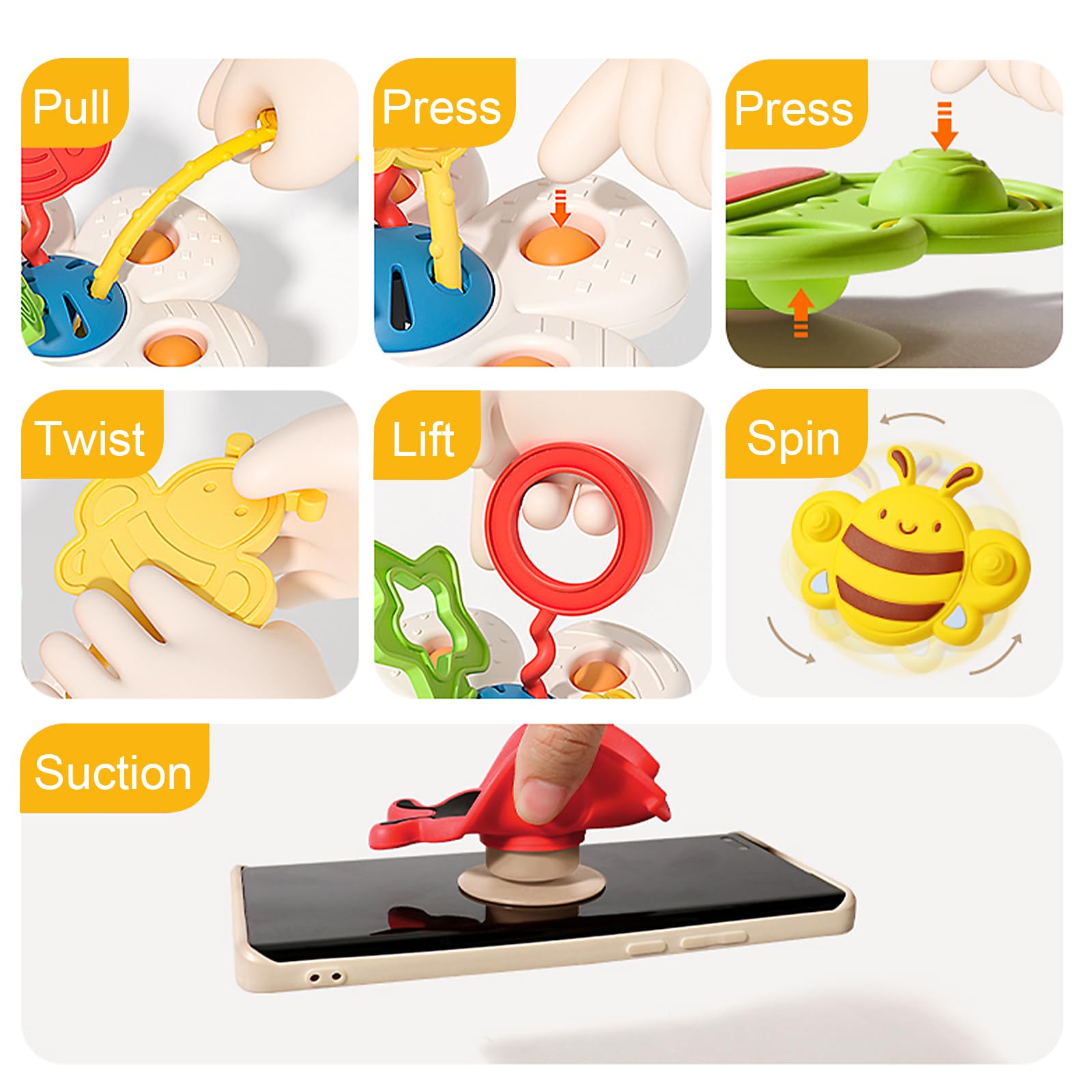 GeeKiPrime Montessori Toys Set for Baby 3 6 12 18 Months, 2-in-1 Silicone Pull String & 3 Insect Spinner Sensory Toy, Teething & Fine Motor Skills Development, Toddler Gift for Boys & Girls 1 2 Year