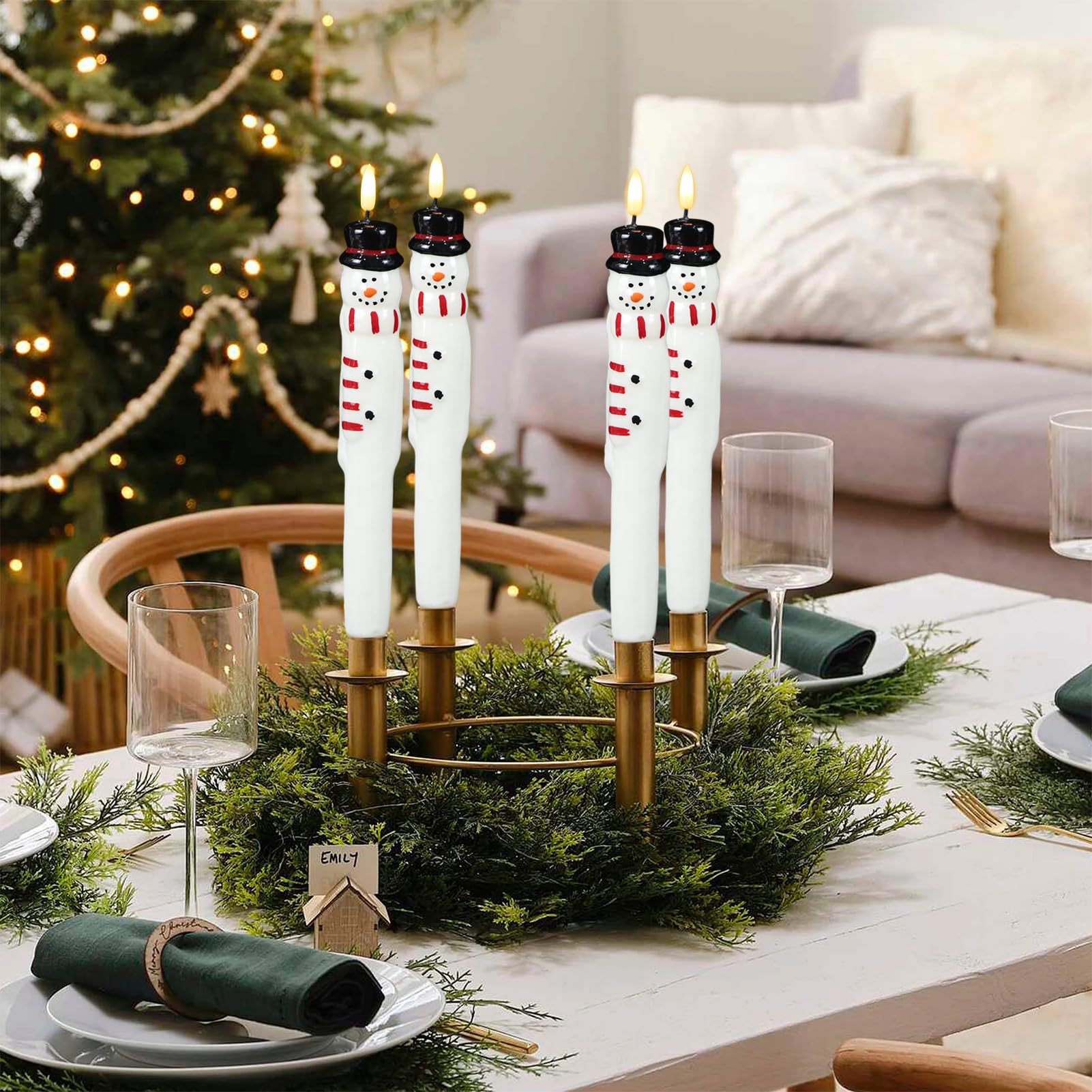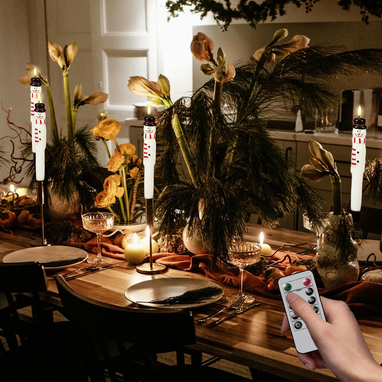 - CHRISTMAS DECORATIONS: The soft, warm glow from our Snowman LED taper Candle sets the perfect mood for holiday gatherings. Whether placed on the mantel, window sill, desk, fireplace or dining table, this candle adds a cozy, romance atmosphere to your celebrations, making every moment feel cheerful