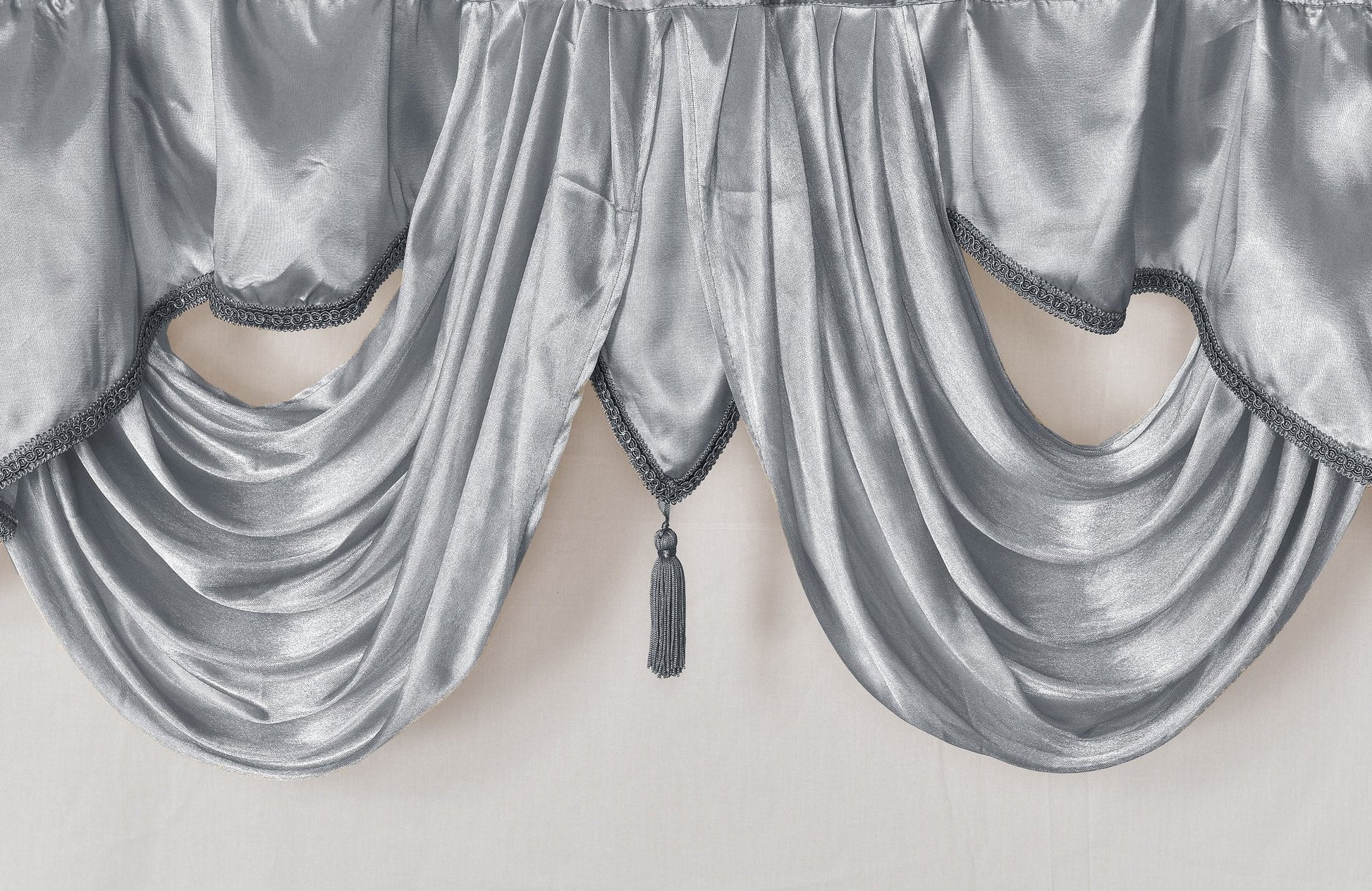 GOHD Valarie Fancy Window Valance. 54 x 18. Taffeta Fabric with Soft Satin Swag. Add Some Royal luxruy Accent to Your Home. (Grey)