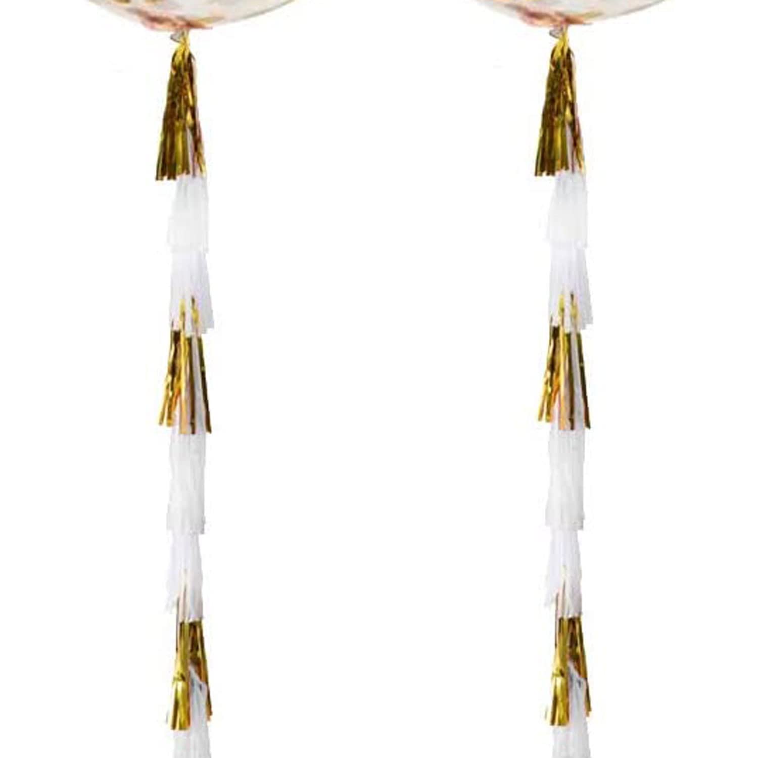 - PACKING:20PCS Tissue Paper Tassels. Color:Gold And White. Size: Each tissue paper tassel length: 36cm / 14inch.