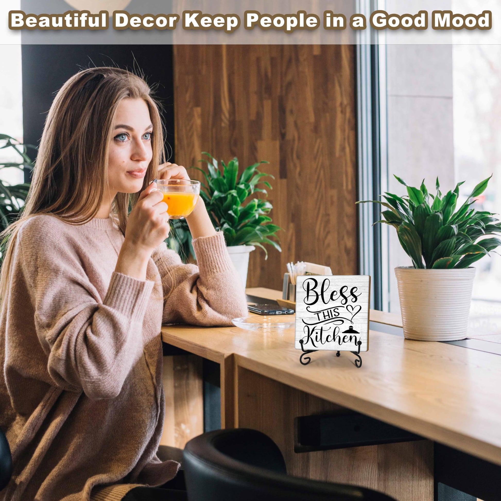GOLRMC Kitchen Counter Decor, Table Decorations for Dining Room, Blessd Sign, Fun Farmhouse Kitchen Wooden Plaque with Iron Stand for Table Shelf Display-A02