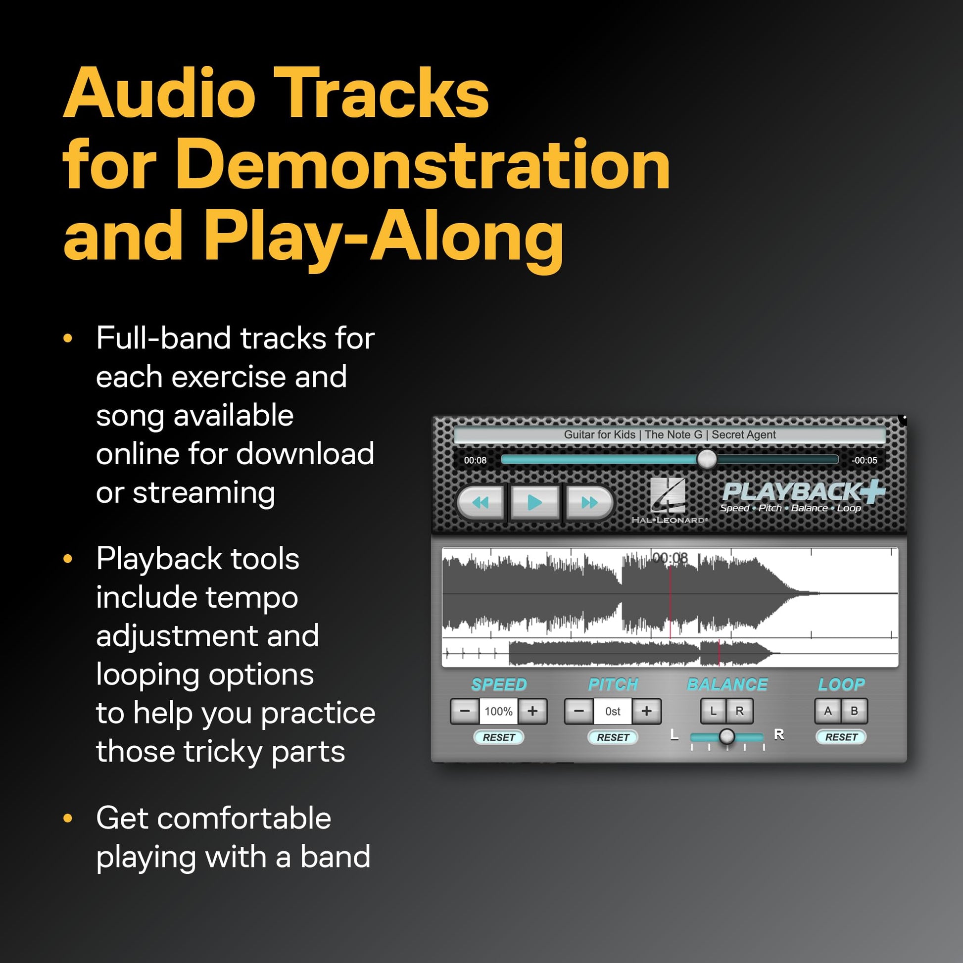 Details: ntroduce your child to the exciting world of guitar with the Hal Leonard Guitar for Kids Method. Designed specifically for young beginners, this fun and engaging method book provides clear, easy-to-follow instructions that will have your child playing guitar in no time. Whether you're a parent or a music teacher, this book is the ideal tool for teaching kids the fundamentals of guitar playing. * * This method offers a step-by-step approach, starting with the basics like learning how to hold the guitar, reading music notation, and understanding rhythm. The course covers essential guitar techniques, including how to play simple open chords like C, G7, Em, G, D, and A. Children will also learn to strum and pick, creating a solid foundation for more advanced techniques. The easy page layouts and no-nonsense approach keep children focused and engaged. * * Kids will stay motivated with the Hal Leonard Guitar for Kids Method, which features fun and popular songs that they can play right from the start. Songs like 'Yellow Submarine,' 'Hokey Pokey,' 'I'm a Believer,' 'Surfin' U.S.A.,' and 'This Land Is Your Land' will keep them excited about learning and practicing their new skills. * * Whether using electric or acoustic guitars, this method is perfect for children of all levels, even if they are just starting out. The lessons are designed for kids to work through independently, or in combination with a music teacher resource. The Hal Leonard Guitar for Kids Method is the perfect gift for young aspiring guitarists, offering an enjoyable learning experience that will set them up for a successful musical journey. * * Songs Included: * ABC * Barbara Ann * Brown Eyed Girl * Coconut * Eleanor Rigby * Get Up, Stand Up * The Hokey Pokey * Hound Dog * I'm a Believer * Land of a Thousand Dances * Love Me Tender * Low Rider * Surfin' U.S.A. * This Land Is Your Land * Yellow Submarine * You Are My Sunshine