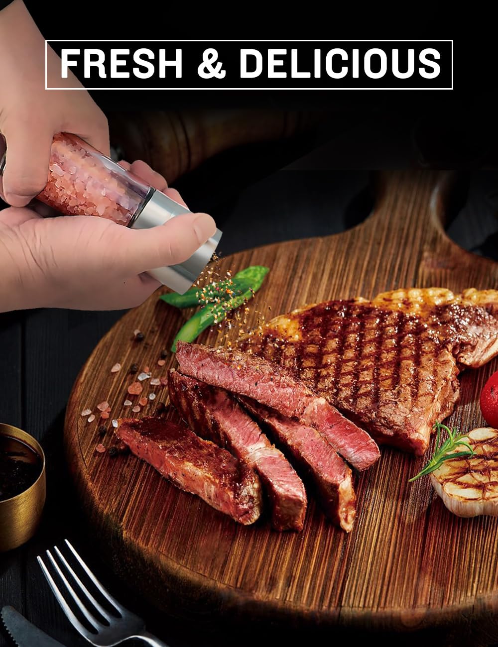 Gulex® Salt Grinder Pepper Mill, Refillable, Adjustable Coarseness Black Pepper Grinder, Stainless Steel Sea Salt Shaker with Ceramic Rotor(Seasoning not included)