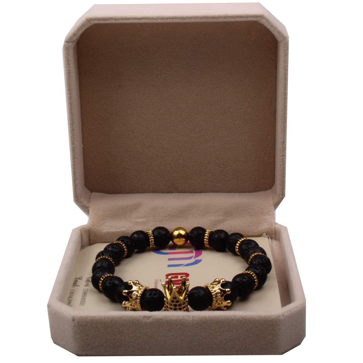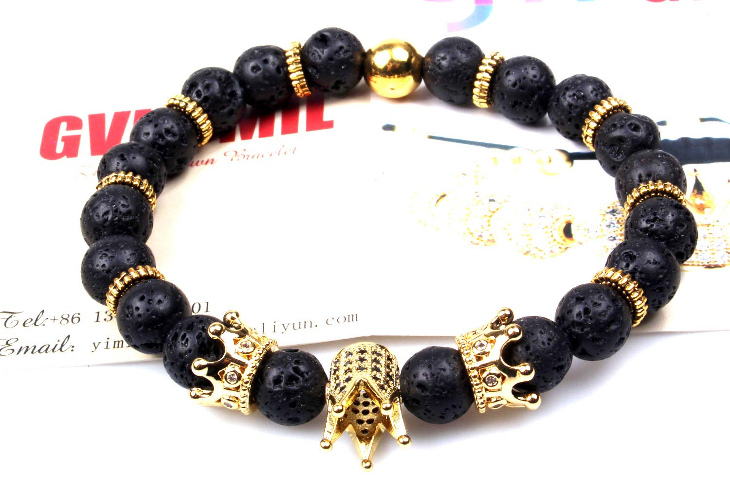GVUSMIL Imperial Crown Bead Bracelet King&Queen Luxury Charm Couple Jewelry for Women Men (Black Lava Rock)